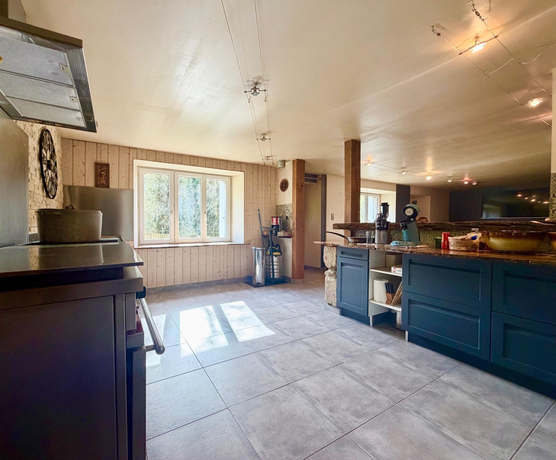 Ouvertures PVC Double vitrage. Chauffage Fuel. Assainissement individuel non conforme. Toiture ardoise et crochets inox. Fibre raccordée.