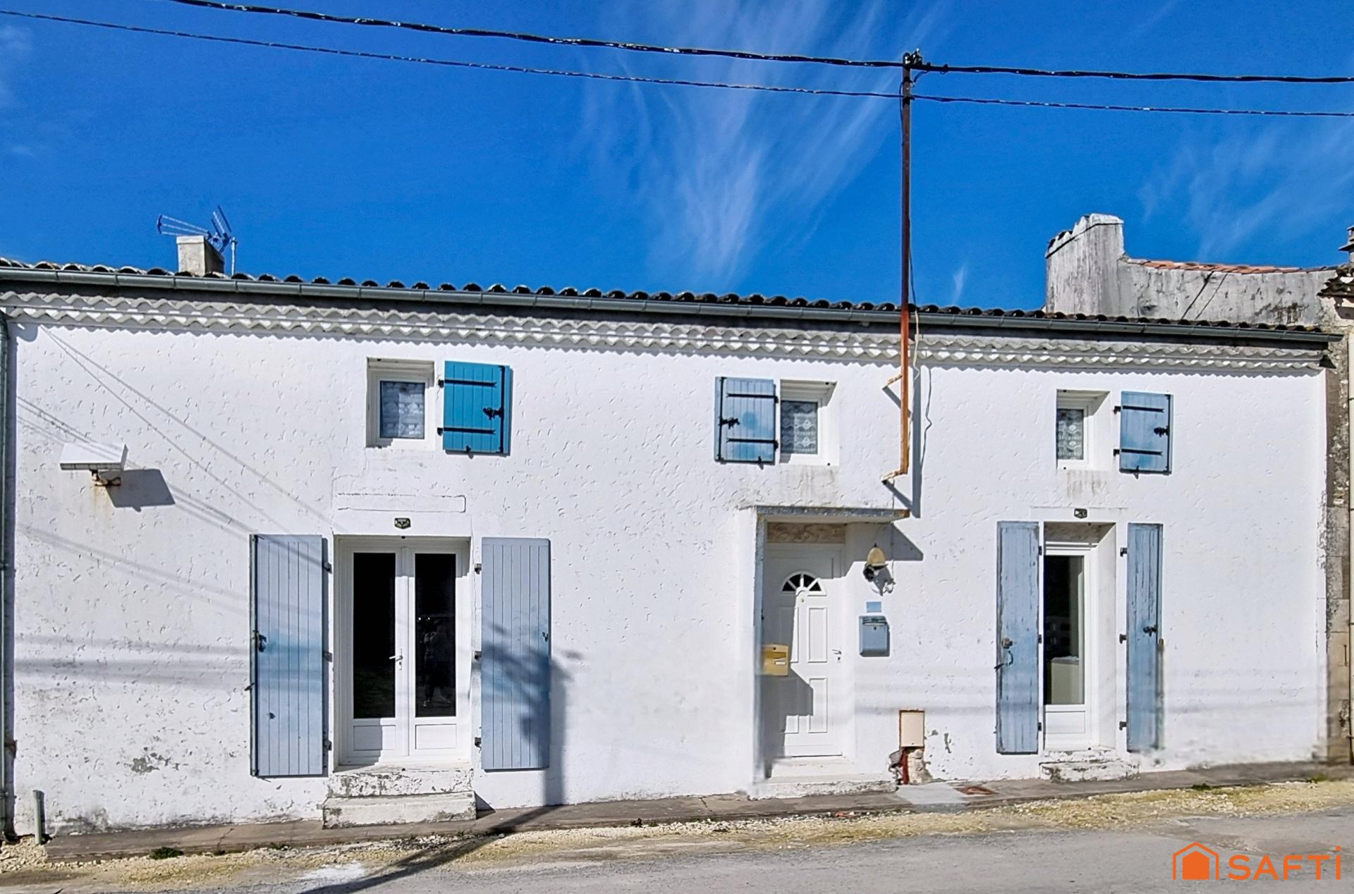Située dans le charmant hameau de Chenaumoine, sur la commune de Semussac, cette maison charentaise rénovée d’environ 120m2 allie authenticité et confort.