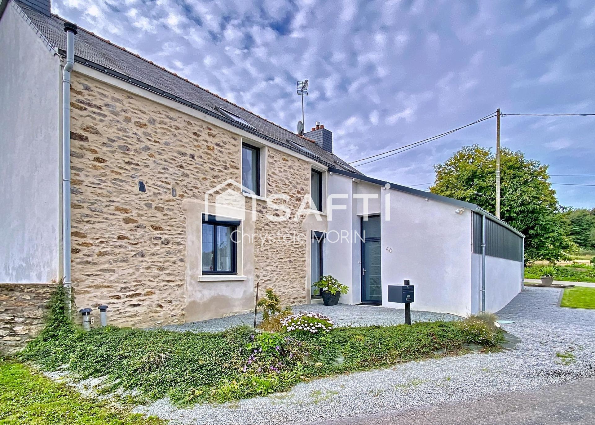 Coup de cœur assuré pour cette maison en pierre entièrement rénovée ! Située dans un hameau calme de Sévérac, à 10 minutes de la base nautique de l'étang Aumée et 15 minutes de Redon, cette maison en pierre offre le charme de l'ancien avec tout le confort moderne. Vous serez à seulement 5 min. du bourg, des commerces de proximité, des écoles et de la gare, tout en profitant d'un cadre de vie à la campagne. Le rez-de-chaussée est composé d'une entrée avec rangements, d'un salon-séjour lumineux de plus de 40 m² équipé d'un poêle à pellets, d'une cuisine aménagée fonctionnelle, d'une chambre de 10.5 m² avec placard actuellement aménagée en bureau, d'une salle d'eau avec wc. Le garage est attenant. À l'étage, le palier dessert deux chambres de 10.5 m² et 14.5 m², un wc et une suite parentale de près de 19 m² avec dressing et salle de bains. Le terrain arboré d'une surface de 591 m², clôturé sur tout le jardin, comprend une belle terrasse, un préau, une cave et un puits. Arrêt de bus devant la maison.