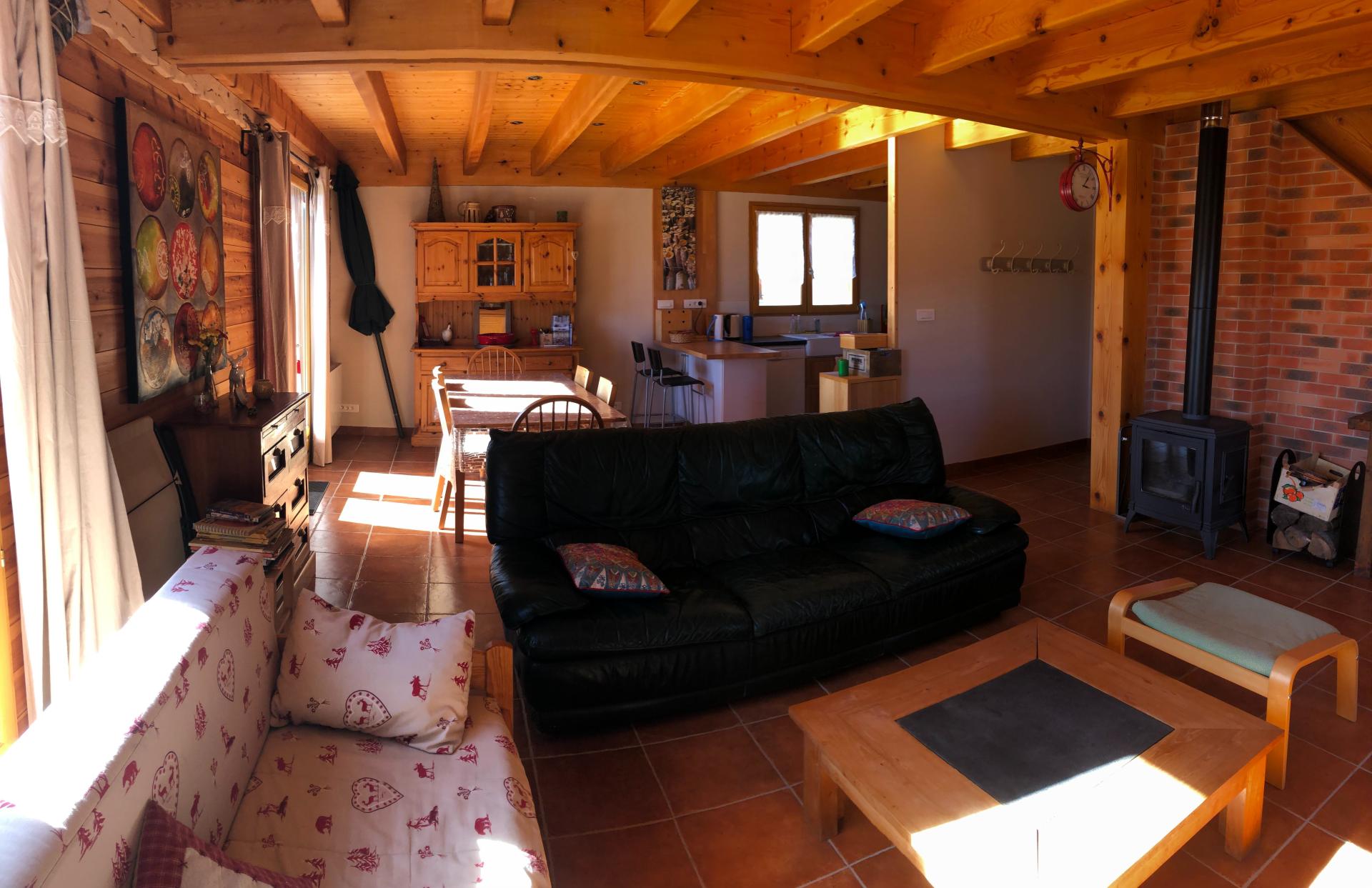 Sur une parcelle de 420 m2, cette maison achevée en 2014 de 135m2 habitable (109m² loi carrez ) sur 2 niveaux est construite sur sous sol/ garage total. De très bonne isolation (matériaux haut de gamme), le chalet est chauffé par un