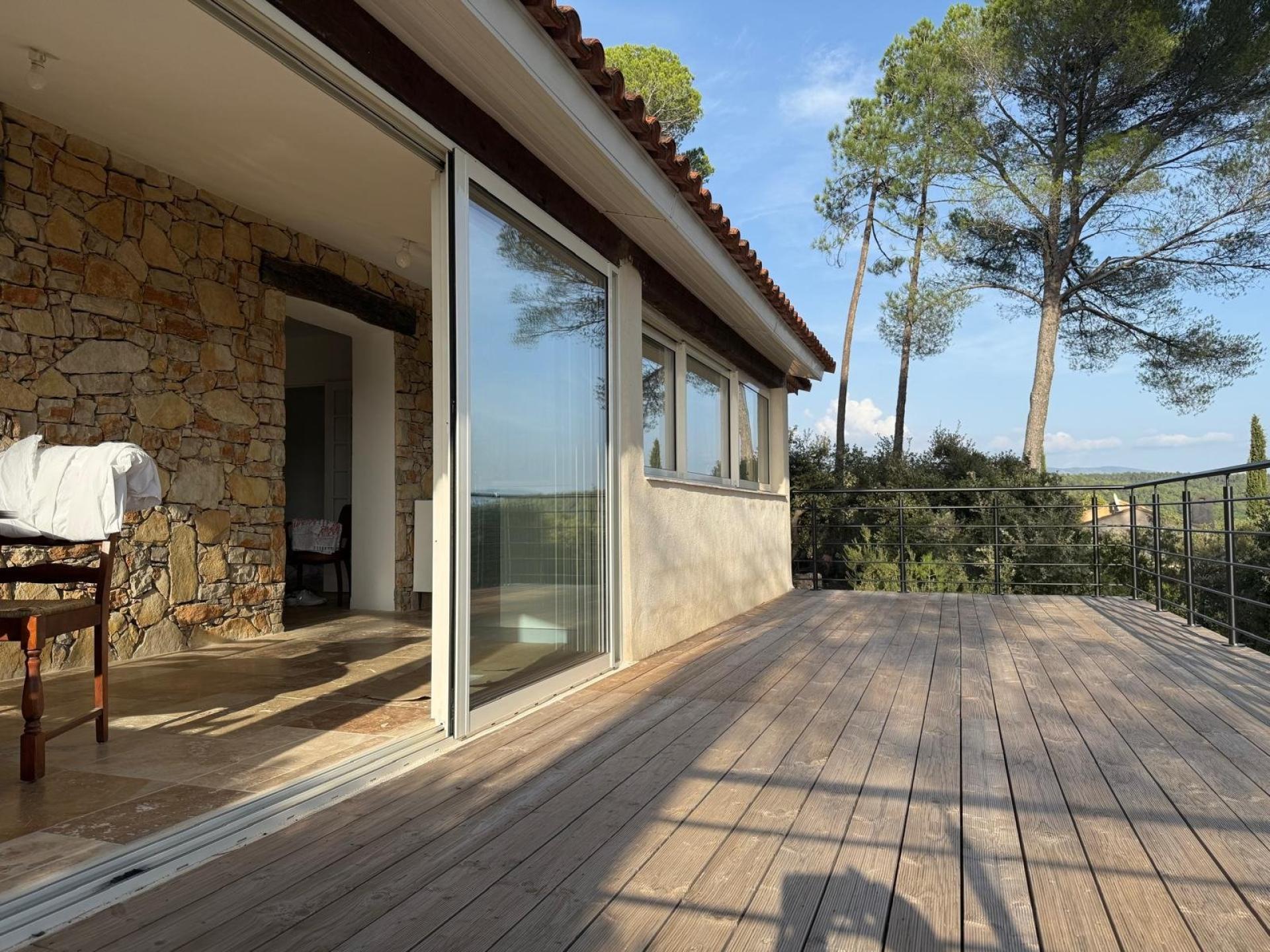 À Sillans-la-Cascade, à quelques minutes à pied du village, cette villa contemporaine de plain-pied baignée de lumière et parfaitement pensée, offre une vue apaisante sur les collines varoises.