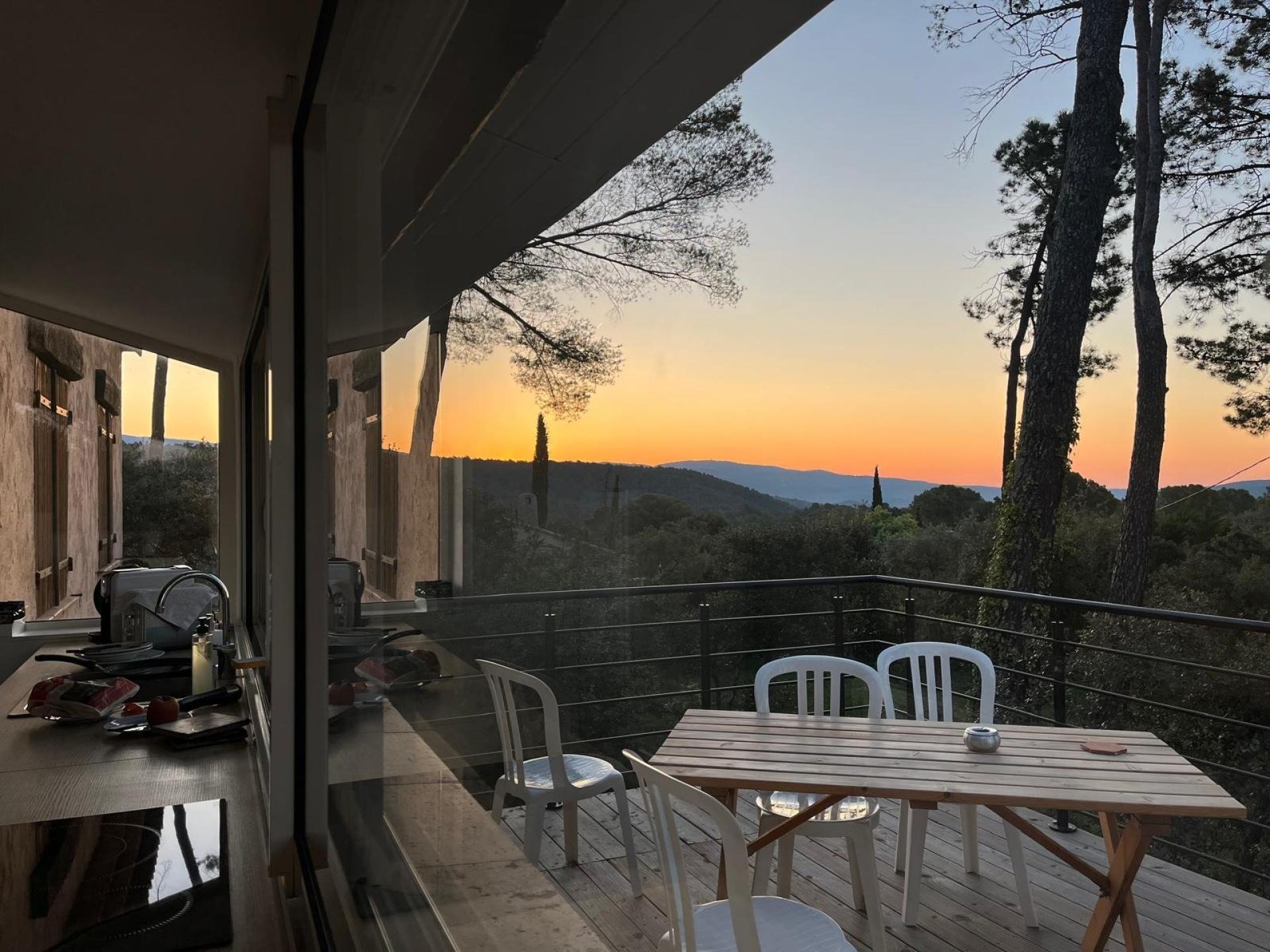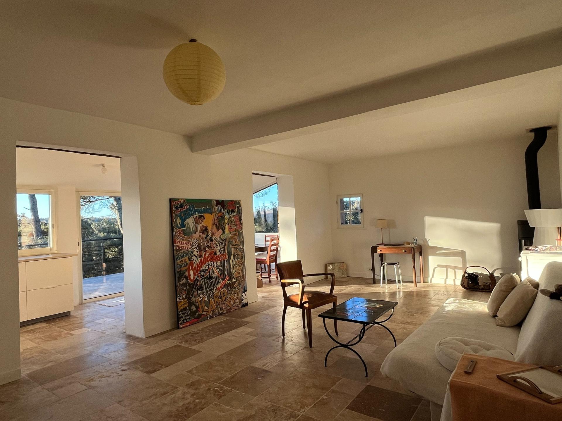 Entourée de pins et de chênes verts, avec ses volumes ouverts, sa déco sobre et raffinée, elle invite au calme et à la créativité.