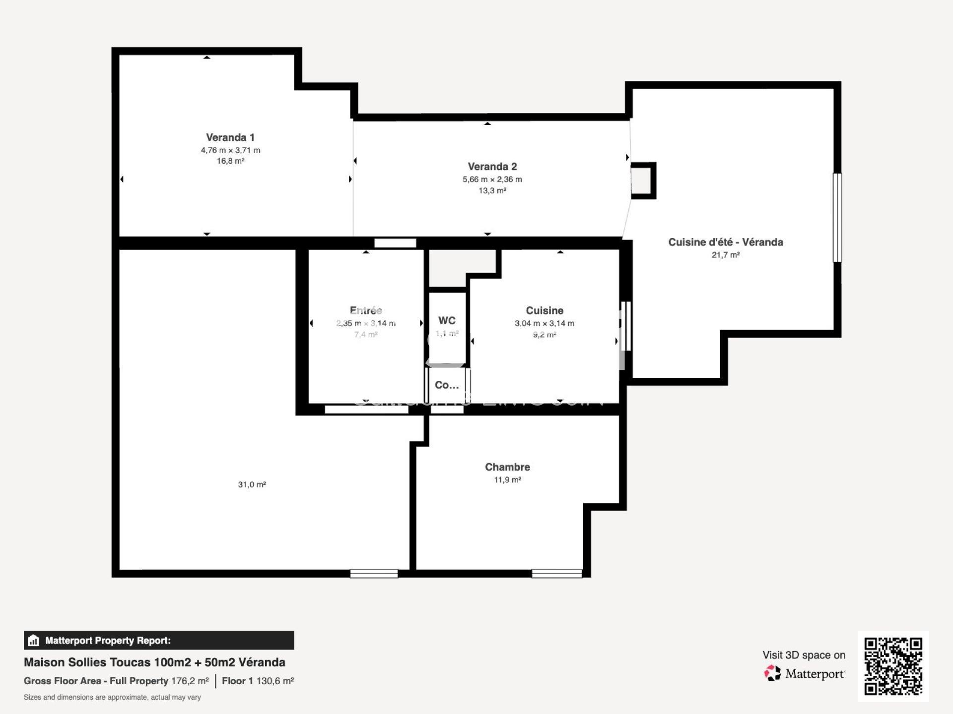 La maison principale développe environ 100 m² et propose trois chambres, avec la possibilité d’en créer une quatrième. Une vaste véranda d’environ 52 m², accueillant une seconde cuisine, permet de profiter pleinement de l’environnement en toute saison.