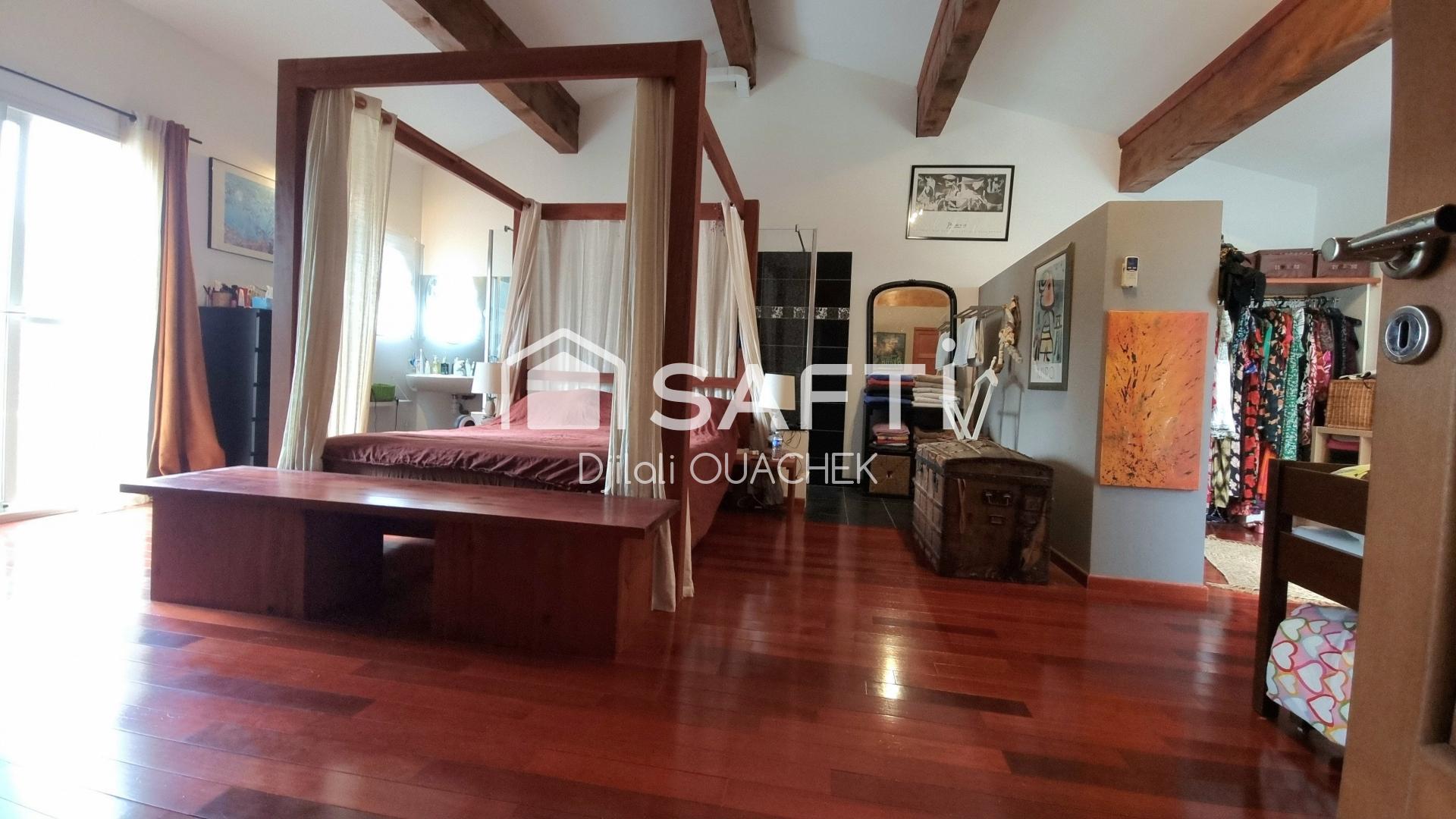 Nichée au calme, cette maison contemporaine de 120 m² séduit par son architecture unique et ses multiples terrasses aux vues dégagées. Sur trois niveaux, elle propose deux suites, dont une spectaculaire de 45 m² au dernier étage avec double dressing, grande douche à l’italienne et deux terrasses offrant une vue imprenable sur la mer et les Albères. Le séjour traversant de 36 m² s’ouvre sur une terrasse plein sud ; la cuisine attenante dispose d’une loggia idéale pour vos petits-déjeuners. Une suite en rez-de-chaussée avec salle de bain, une buanderie, une cave, un garage de 30 m², et trois WC indépendants complètent ce bien aux prestations soignées. Ambiance zen, jardin intime, volumes généreux : une maison aussi rare que fonctionnelle.