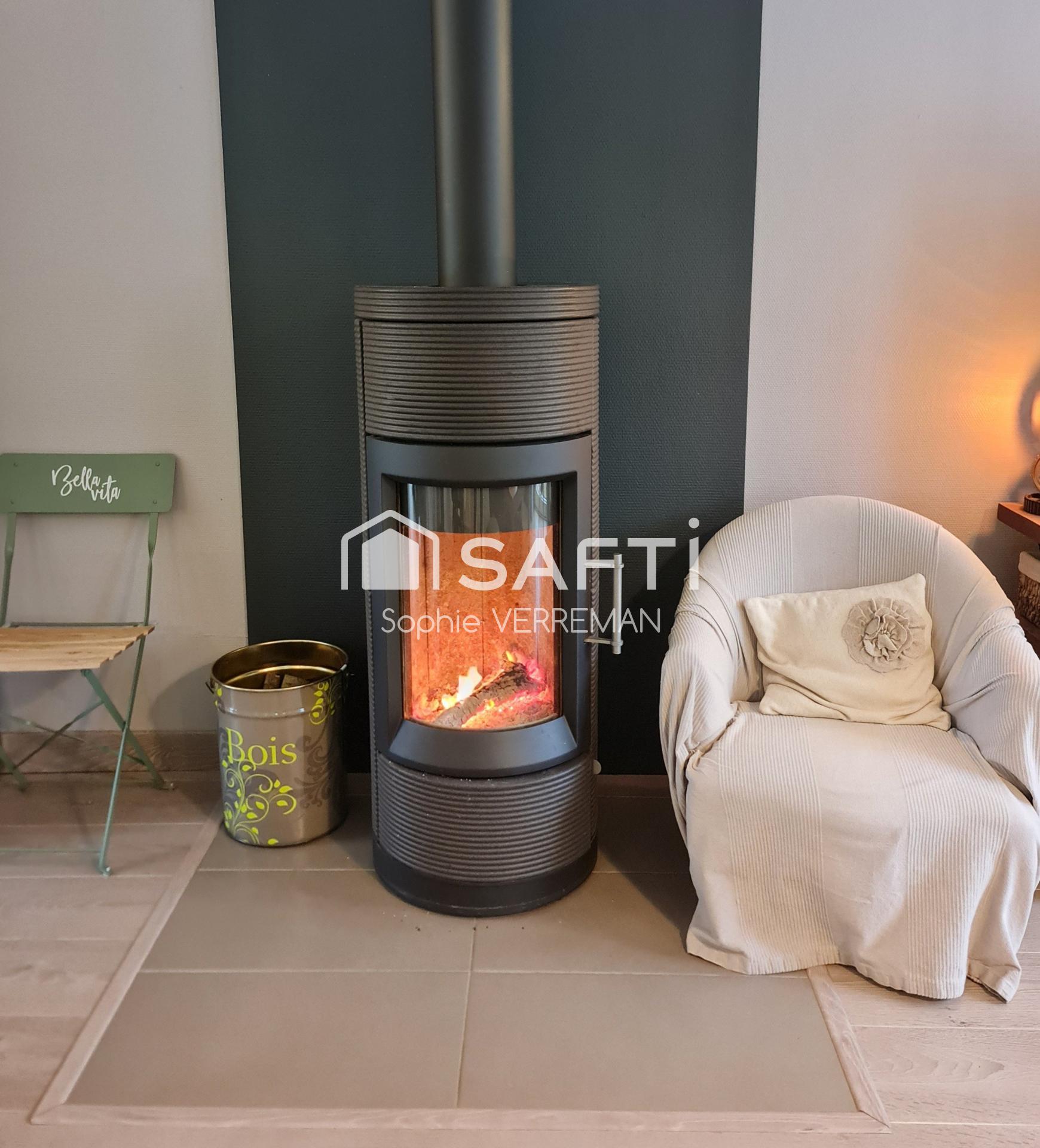 Chauffage électrique + poêle à bois. Fibre. Taxe foncière 1521€. Huisseries PVC. Possibilité de créer une suite parentale au rez de chaussée.