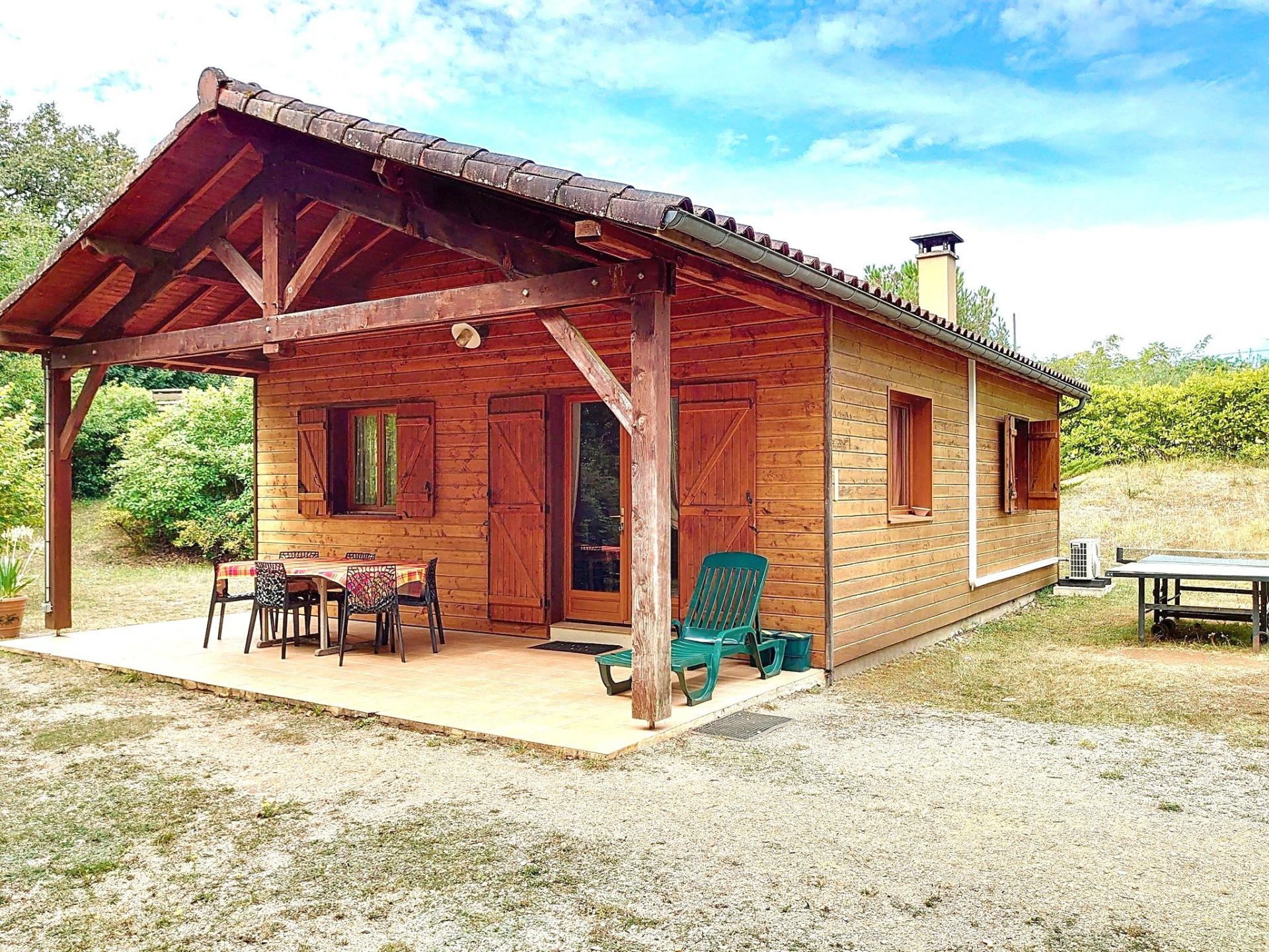 Dans le secteur de Souillac, à mi-chemin entre Sarlat et Rocamadour, entre Périgord et Quercy, je vous propose dans un cadre bucolique exceptionnel cette jolie maison à ossature bois de plain-pied faisant rimer confort moderne, bien-être, nature et authenticité. Lové dans un magnifique écrin de verdure, avec son vaste terrain entièrement clos et arboré de 6623 m² composé de prairies et de chênes, véritable havre de paix, ce chalet de 56 m² habitables vous invite littéralement à la quiétude. Vous disposerez d’un beau séjour, d’une cuisine tout équipée, de 2 chambres, d’une salle d’eau et d’un wc indépendant. Côté confort, vous disposerez d’une clim réversible, d’un poêle à bois en complément dans le séjour, et de radiateurs électriques dans les chambres. Vous bénéficierez d’une belle terrasse couverte et à la belle saison, vous pourrez pleinement profiter de la piscine sécurisée de 8X4 m.