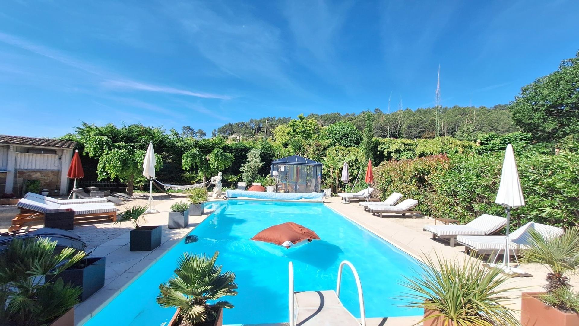 Au cœur d’un village typiquement provençal, véritable bastide de 375 m2 hab entièrement rénovée dans le respect de son authenticité À cinq minutes de la gare TGV, à 1H de l’aéroport de Nice et à 10 min d’accès à l autoroute Elle dispose de sept suites parentales climatisées avec salle d’eau et WC, deux entrées, une cuisine authentique sublimée par de superbes voûtes en pierre apparente et un four à bois dans une harmonie préservant le charme de l’ancien, dans la continuité, un vaste séjour agrémenté d’une grande cheminée avec insert. un second salon dédié à la détente, un cellier, une buanderie ainsi que deux caves à vin. un sauna complète le bien .