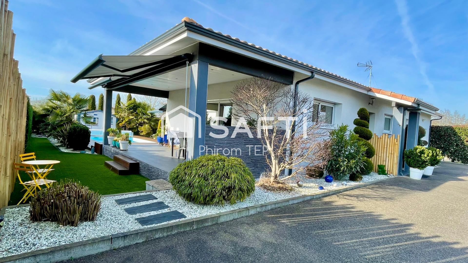 Sur Tartas, découvrez cette magnifique villa contemporaine parfaitement entretenue, offrant 131 m² habitables sur un terrain paysager de 945 m².