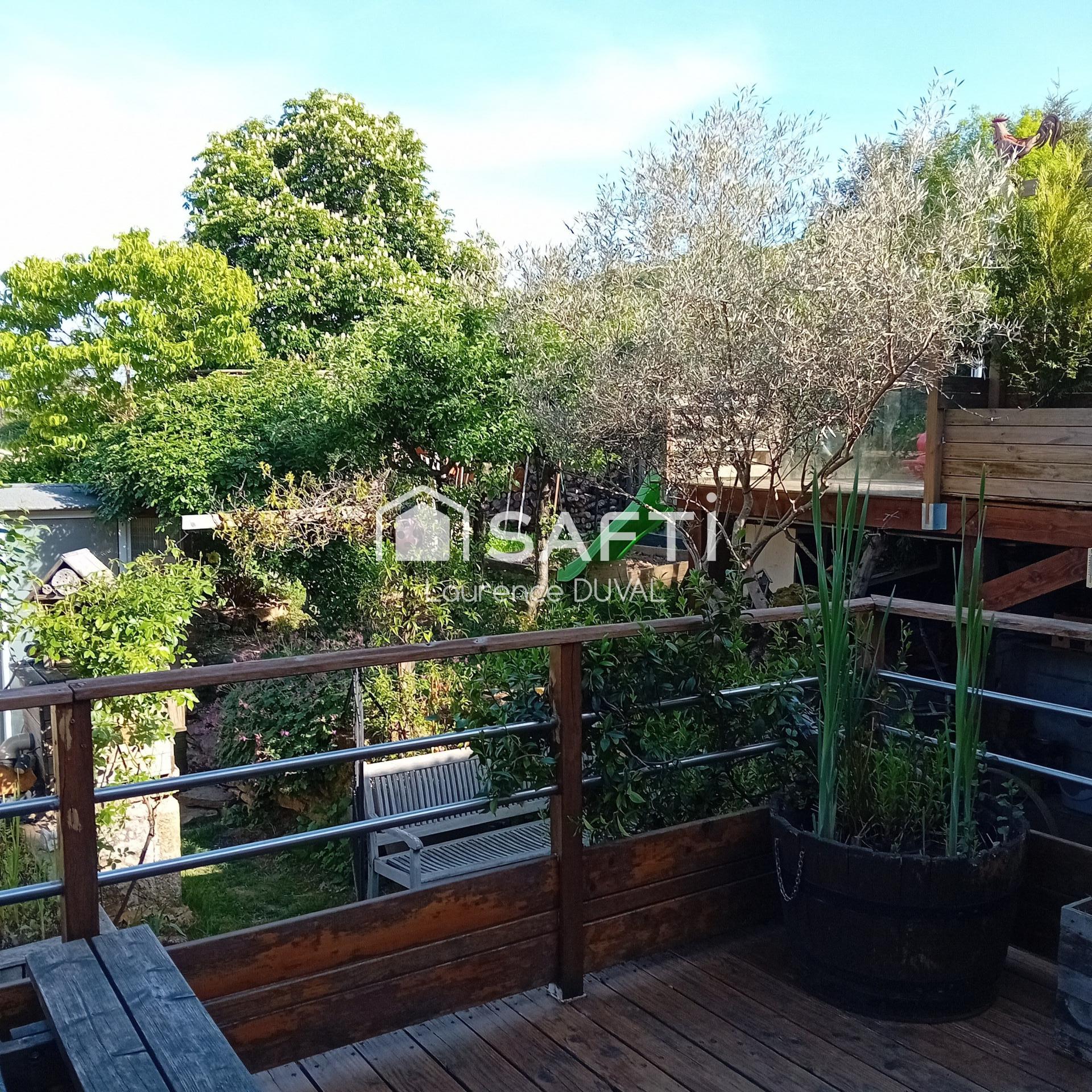 À l'extérieur, cette propriété bénéficie de deux terrasses en bois totalisant 38m², idéales pour des moments de détente, ainsi qu'un jardin arboré de près de 300m² avec un charmant bassin à poissons (démontable). Un appentis, actuellement utilisé pour un jacuzzi, peut être transformé en serre ou jardin d'hiver, un carport motos ou quad et un puits complètent ce bien. Des places de parking extérieures sont disponibles.