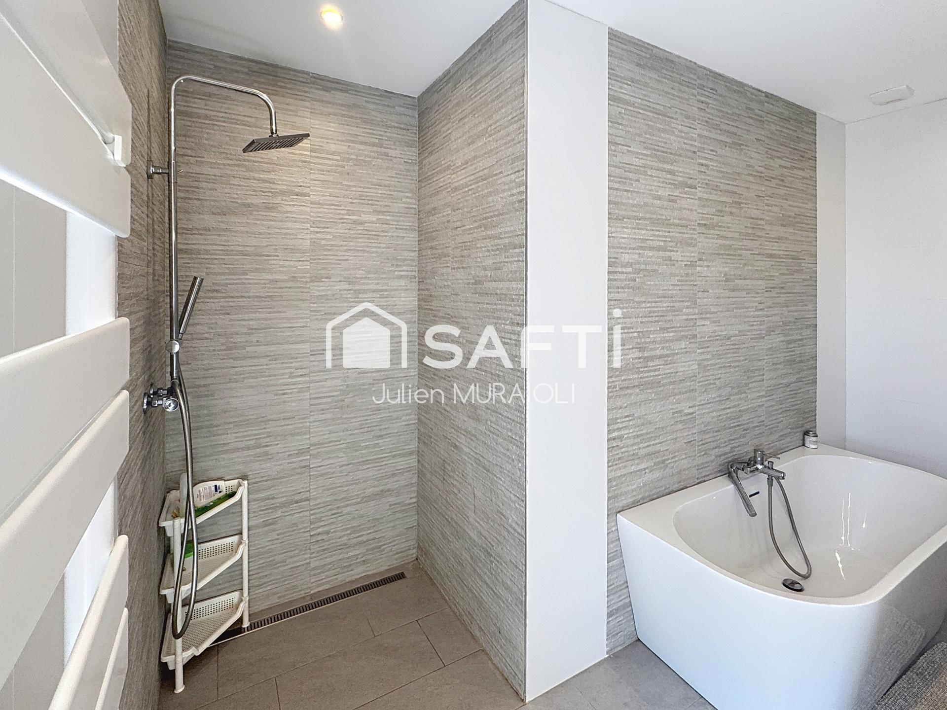Elle offre une suite parentale avec dressing, salle de douche et terrasse privative avec jacuzzi, une seconde chambre avec salle d’eau, deux chambres supplémentaires et une salle de bains avec baignoire et douche.