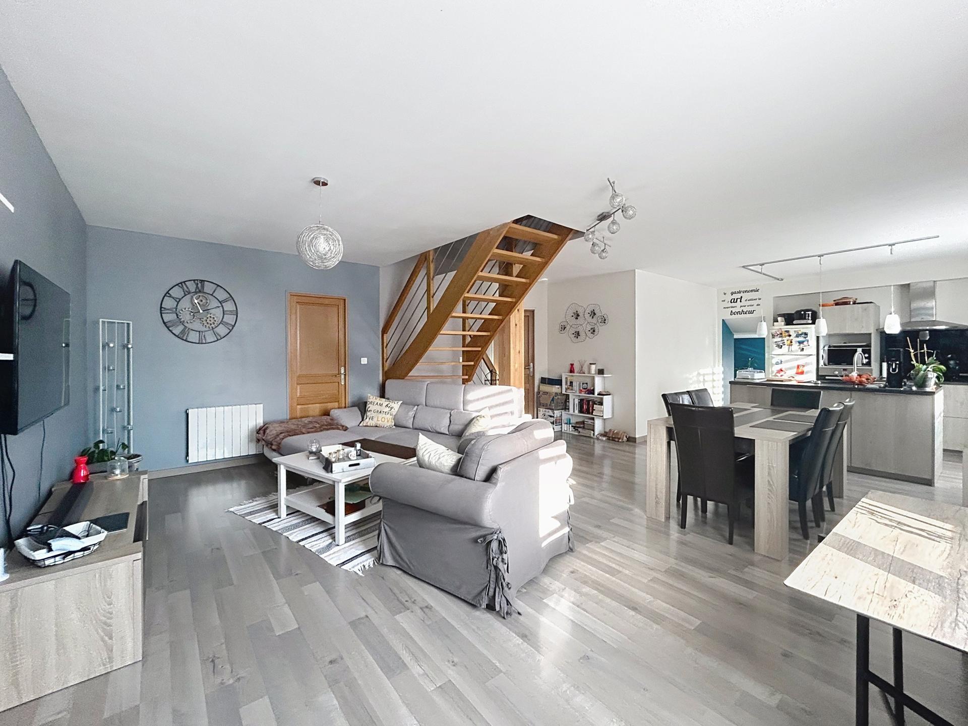 Nous vous proposons cette maison d'habitation d'une surface 116 m² qui se compose d'une entrée avec espace de rangement, un wc, une cuisine ouverte aménagée et équipée donnant sur la salle à manger / salon, un bureau pouvant servir de chambre d'appoint, une suite parentale (dressing + salle d'eau avec wc).