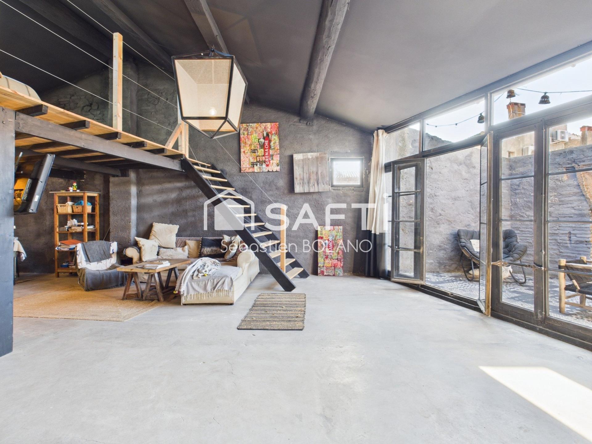 Édifiée sur une surface totale de 250 m², cette ancienne grange rénovée abrite, à l’étage, un loft de 100 m² habitables environ au style industriel et chaleureux. Il comprend une vaste pièce de vie baignée de lumière grâce à ses grandes ouvertures, une cuisine, une chambre en mezzanine et une salle d’eau. La terrasse très ensoleillée est un véritable atout, parfaite pour profiter du climat méditerranéen tout au long de l’année.