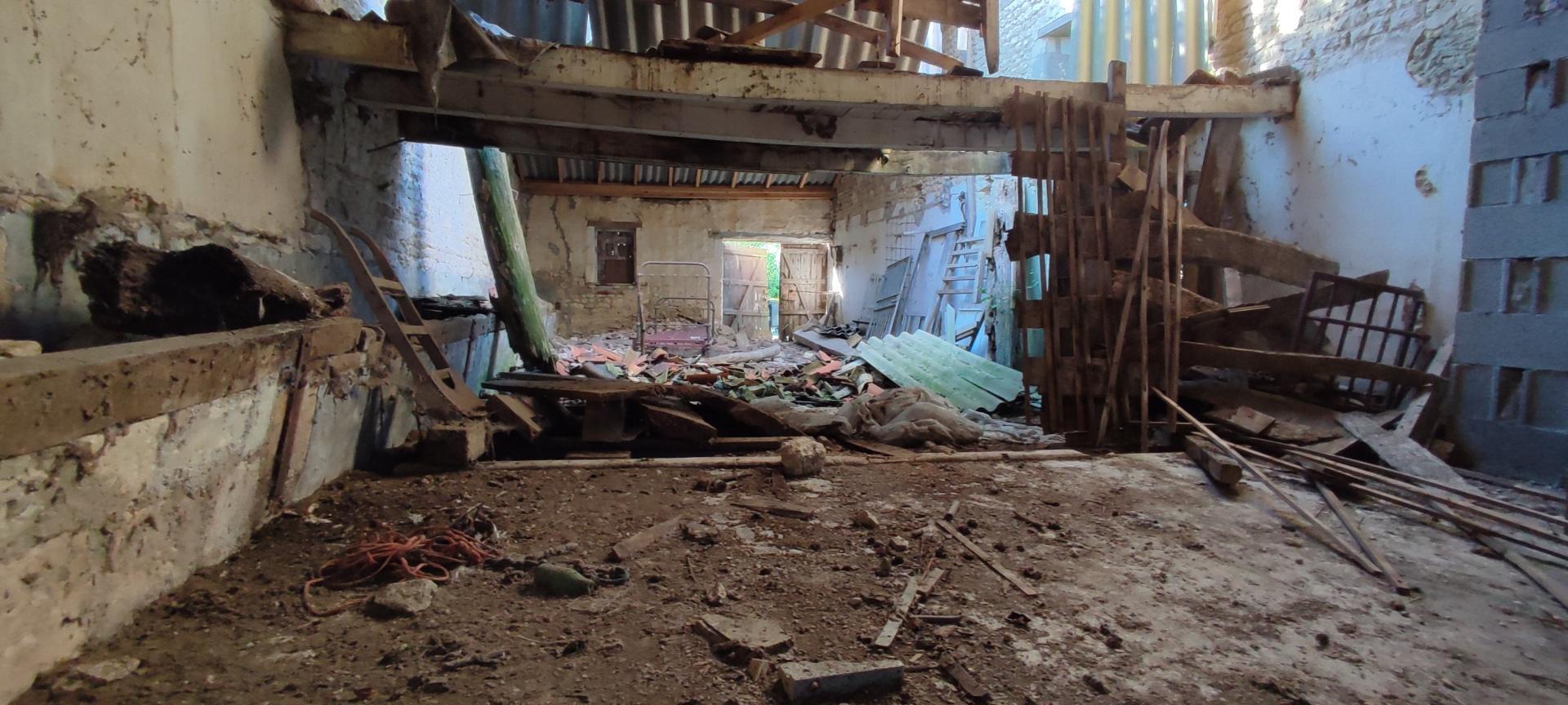 Accessible par la rue, les murs sont sains, la toiture est en partie effondrée, les réseaux sont dans la rue.