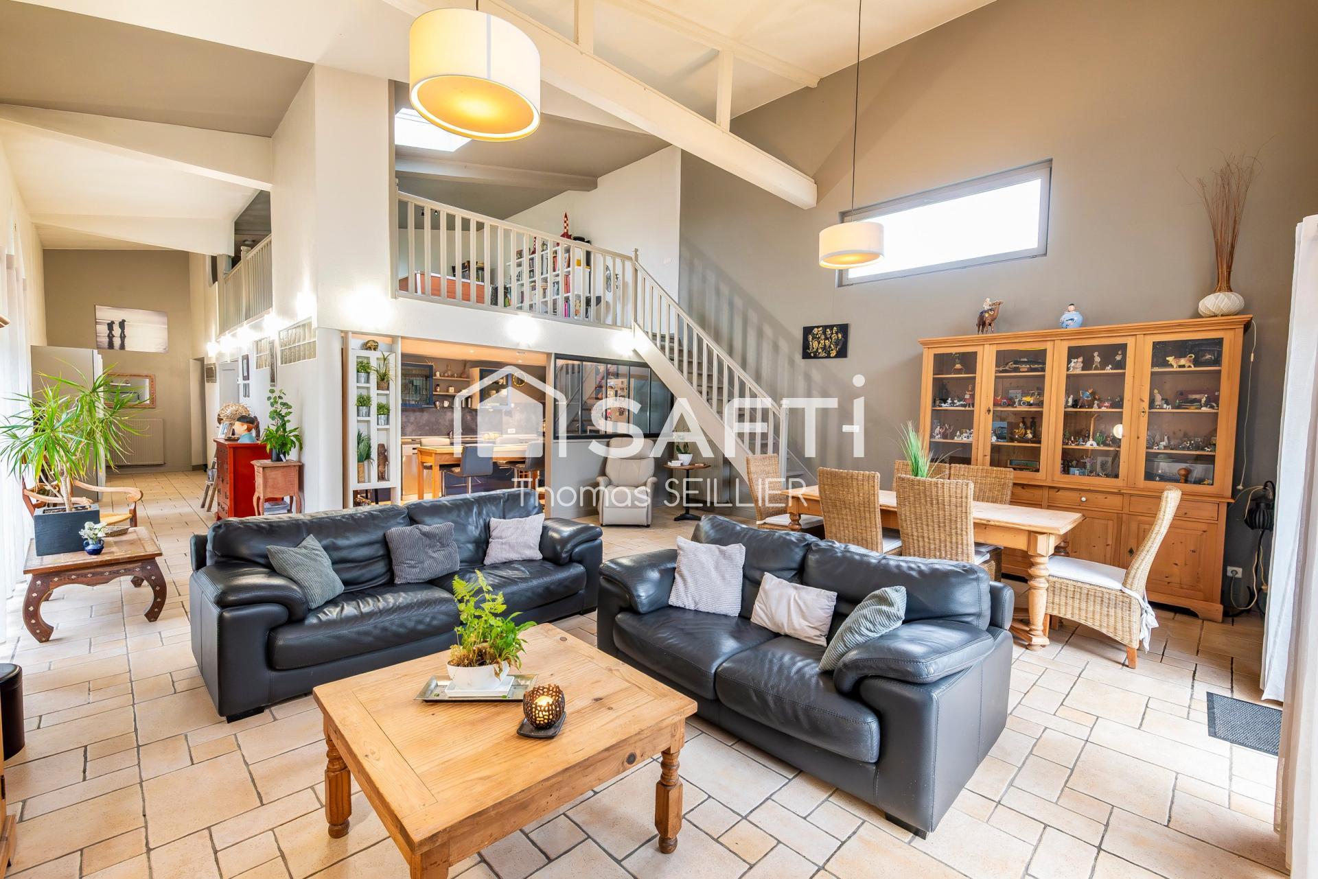 . Volumes Hors Normes : Un séjour cathédrale de 50 m² avec une hauteur sous plafond de 5,50m offrant une sensation d’espace unique proche de l’esprit loft.