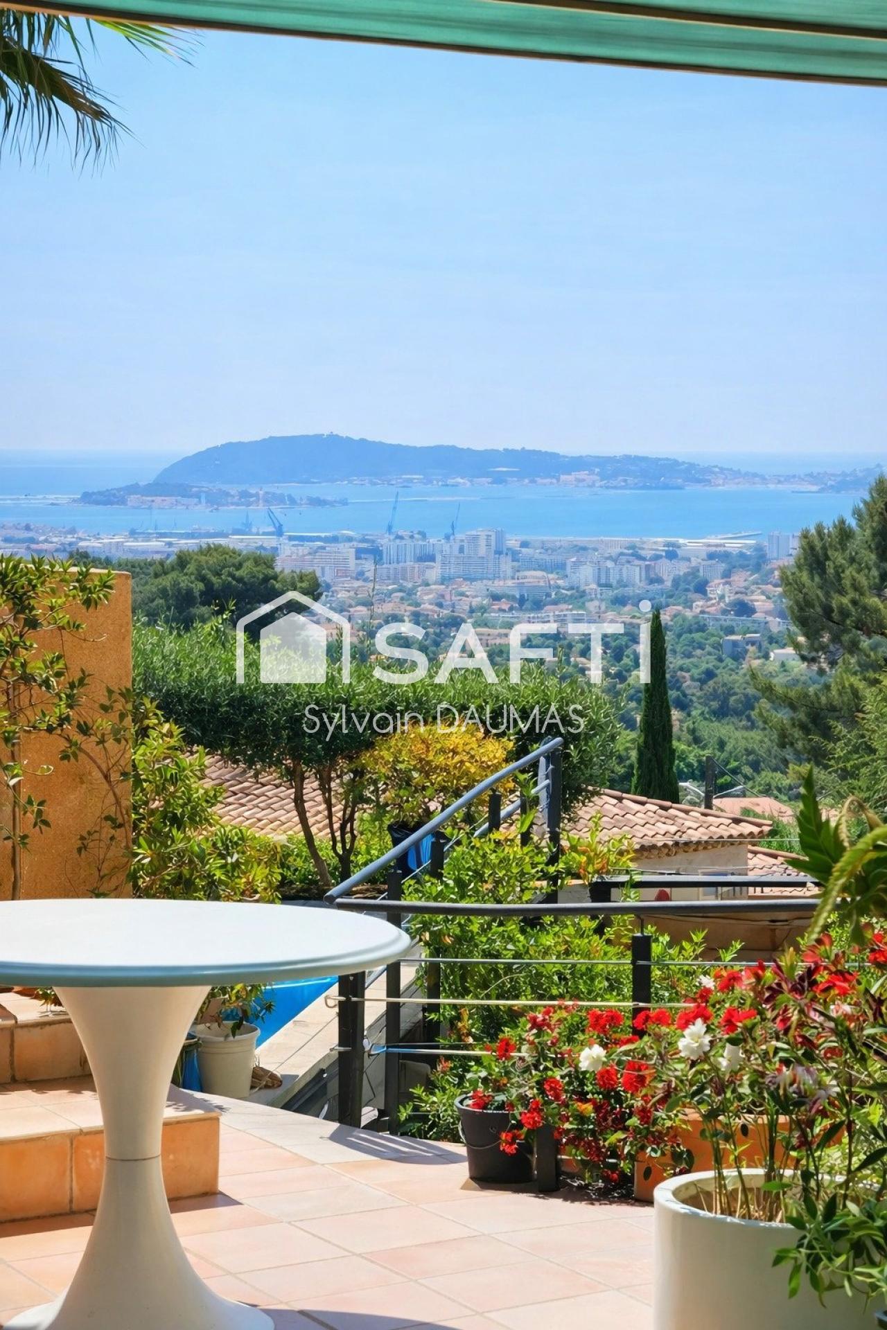 Perchée dans un environnement privilégié, cette propriété d’environ 150 m² offre un spectacle rare : une vue panoramique et imprenable sur toute la rade de Toulon.