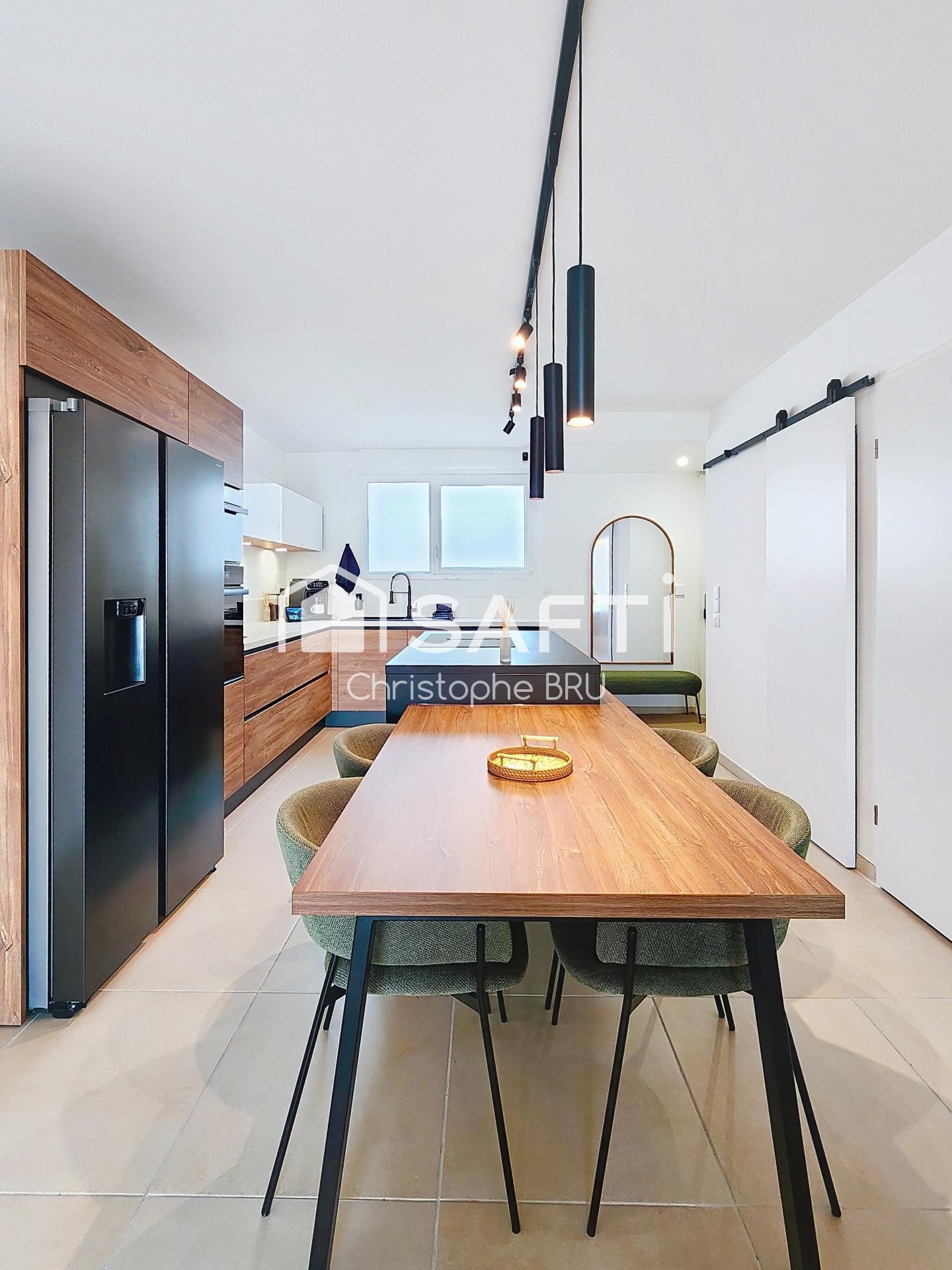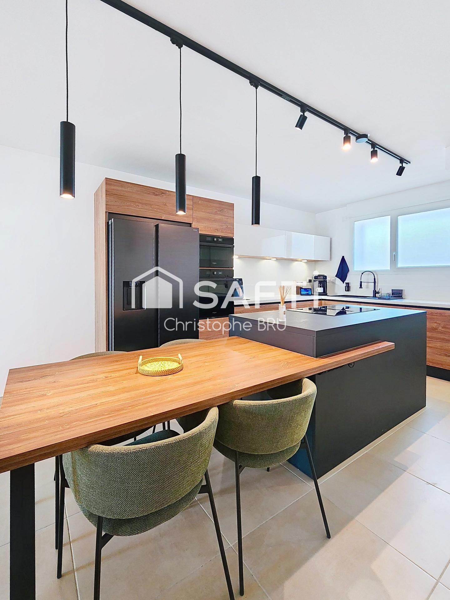 Dès l’entrée, la magie opère avec une belle pièce de vie baignée de lumière, sublimée par une cuisine ouverte aménagée, parfaite pour partager des instants chaleureux en famille ou entre amis.