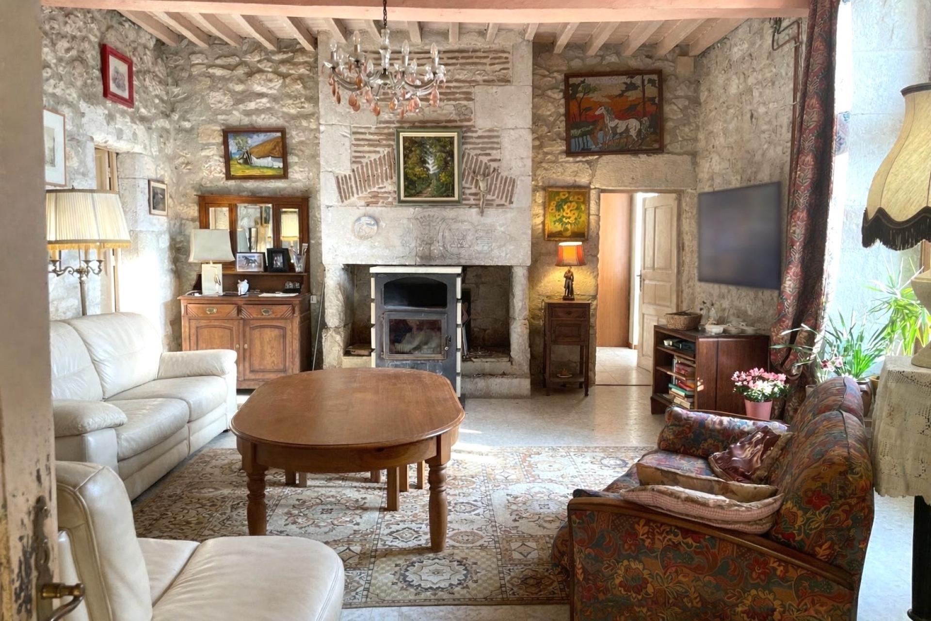 Pleine de charme, elle conserve toute l'authenticité de l'ancien avec ses pierres apparentes, ses poutres, ses cheminées tout en bénéficiant d'améliorations modernes permettant d'allier cachet et confort moderne.( pompe à chaleur, panneaux photovoltaiques)