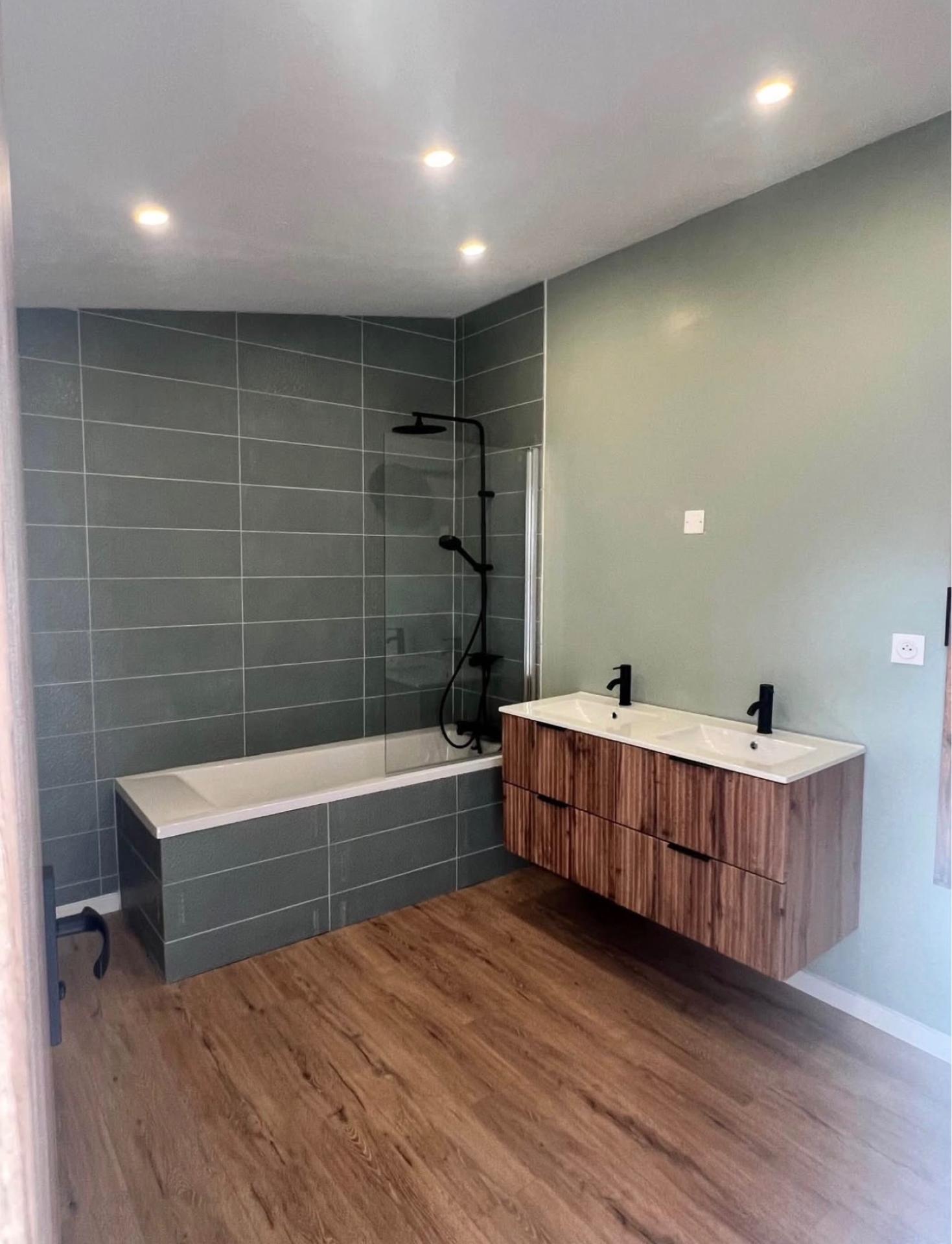 • une salle de bain de 7 m² avec baignoire