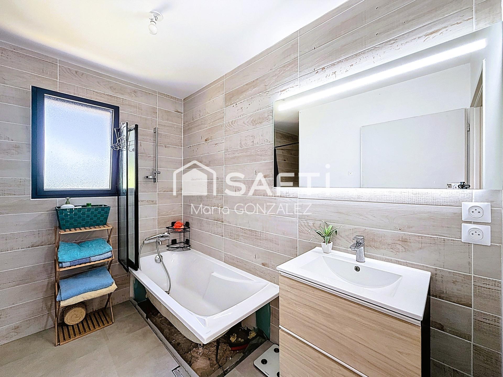 Elle vous offre en effet une vaste pièce de vie lumineuse et traversante, une grande cuisine séparée aménagée et équipée avec cellier attenant, une salle de bain avec douche et baignoire (en cours de finition), un WC, 3 chambres dont 2 avec dressing. Un garage complète l'ensemble.