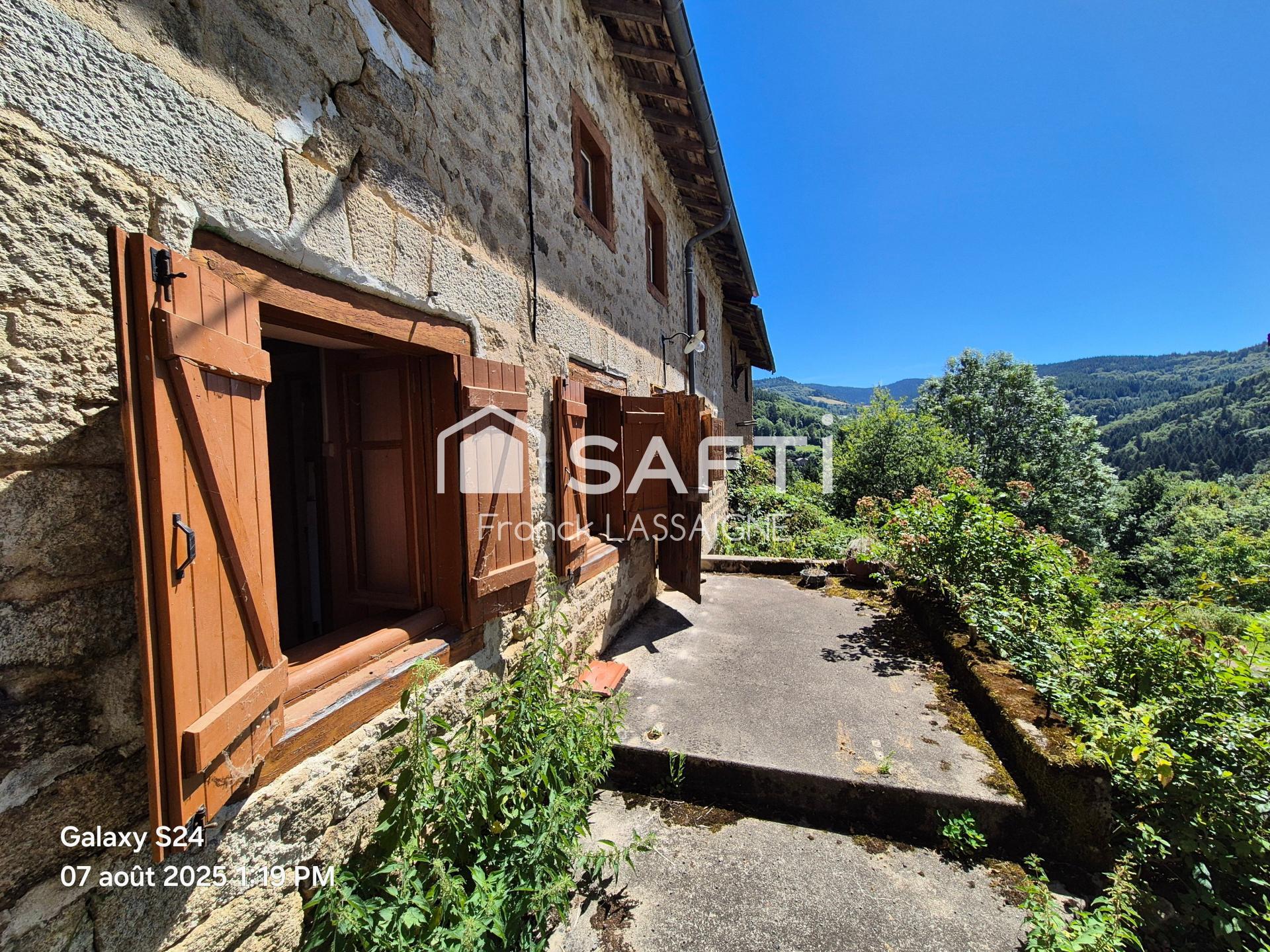 A 10mn d'Ambert dans un village d'altitude calme et verdoyant... Venez découvrir cette maison avec une terrasse et vue dégagée... Elle se compose d'une cuisine avec cheminée, un salon/salle à manger, une chambre, wc, dégagement... 1er étage 2 chambres avec salle d'eau... grenier... Chauffage poêle à bois... Cave... Estimation des coûts annuels d'énergie du logement entre 3600 et 4930 euros... N'hésitez pas à me contacter par téléphone pour plus d'informations...