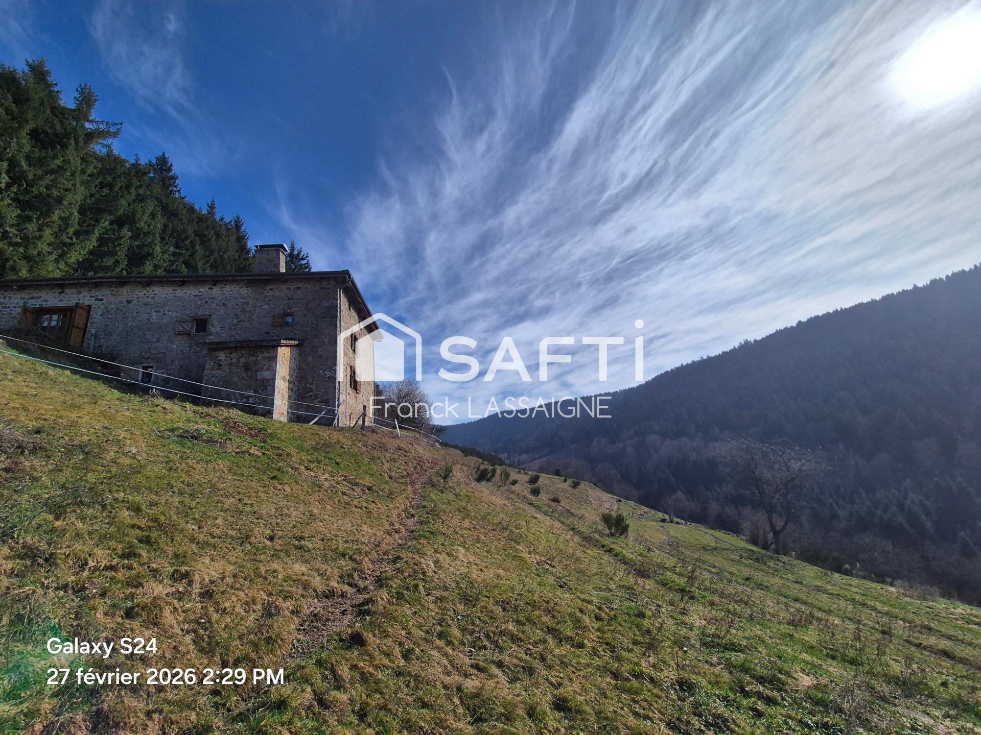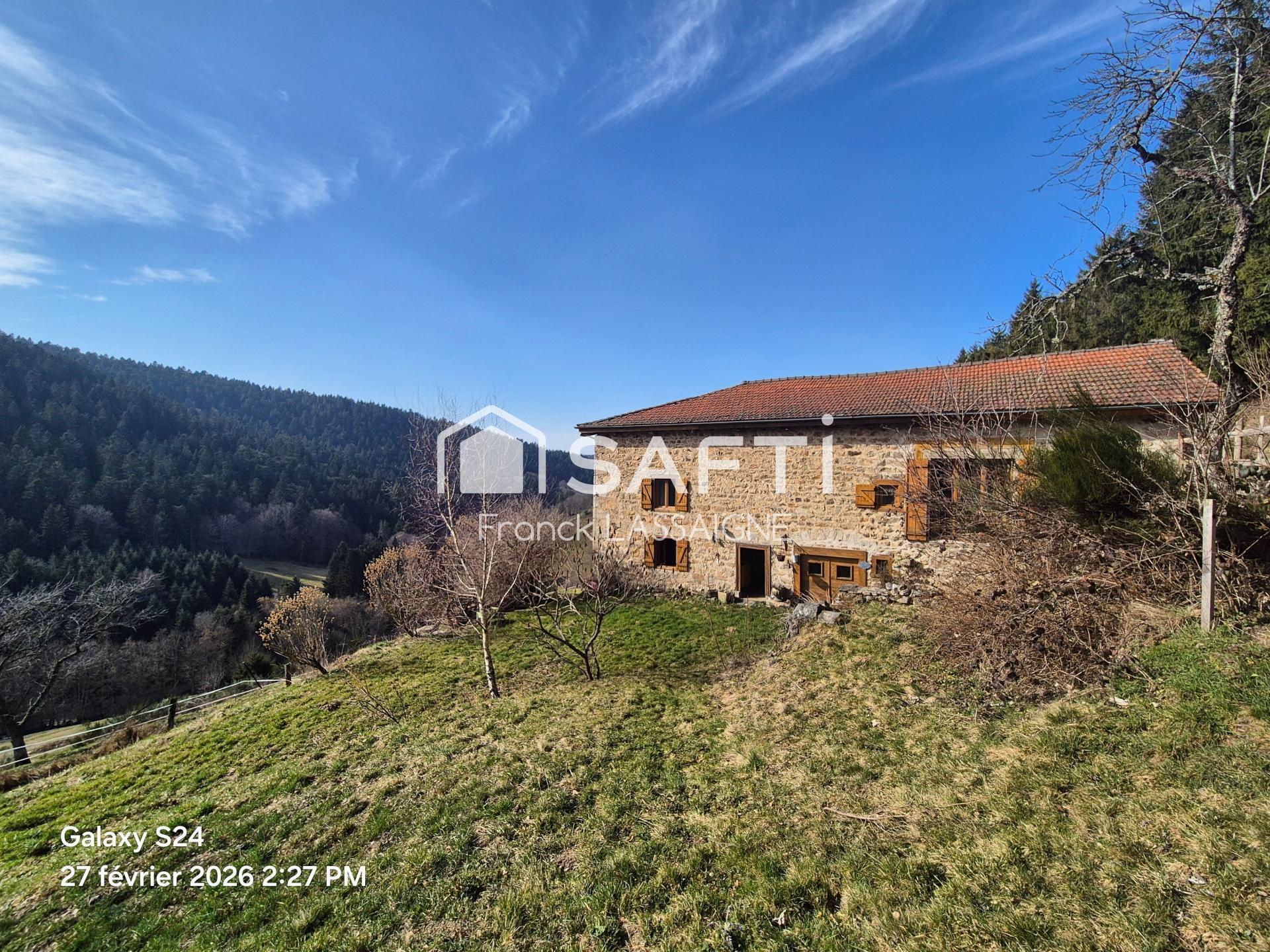 A 15mn d'Ambert côté Forez... Amoureux de la nature, vous serez séduits par cette magnifique maison en pierres seule au milieu d'un terrain de 4000 m² avec source et sans aucun vis à vis... Elle est composée d'une cuisine avec tout le charme de l'ancien sans oublier son four à pain, 1 salle d'eau/wc, au 1er étage 2 chambres, 1 grande pièce à vivre à finir d'aménager avec mezzanine. Cave, Etable... Estimation des coûts d'énergie annuels du logement entre 2570 et 3510 euros... A savoir que l'accessibilité à cette maison est un chemin pavé carrossable et non goudronné... N'hésitez pas à me contacter uniquement par téléphone pour plus d'informations