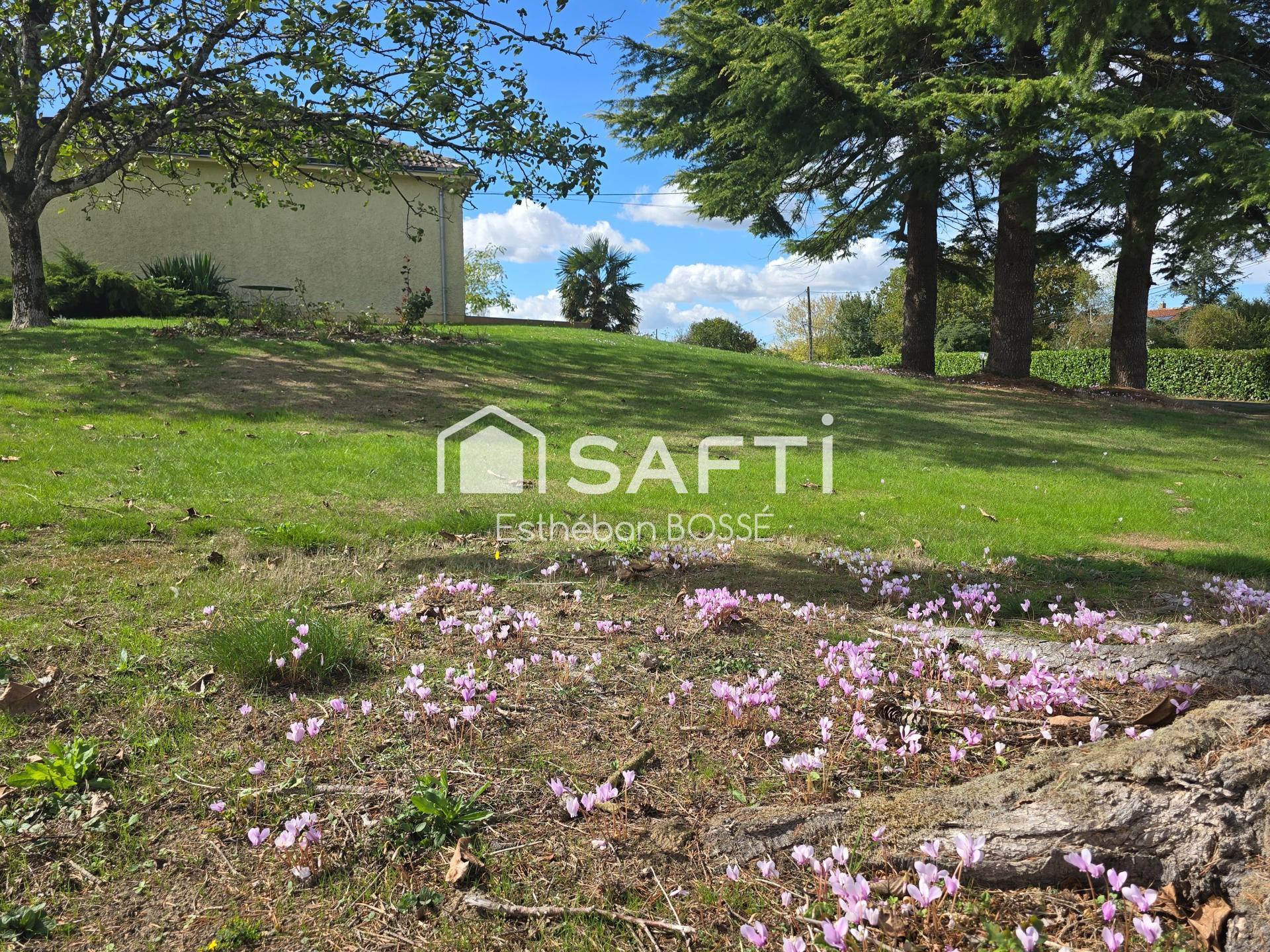 Le terrain arboré de 5000m2 entièrement clos