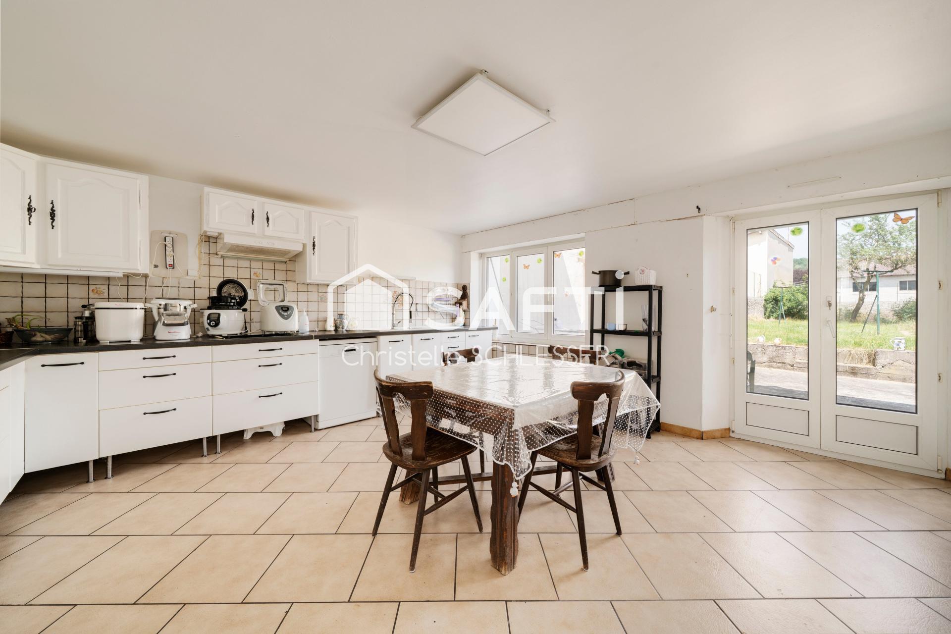 Christelle SCHLESSER vous présente cette grande maison de 202 m2 habitables à Varangéville sur un terrain de 752 m2 dans une ancienne ferme Lorraine. On commence la visite toute en longueur ! Entrée, séjour salle à manger de 50 m2 avec son escalier bois qui vous mènera au 4 chambres et un wc ! La visite continue au RDC avec la SDB composée d 'une baignoire et d'une douche. Un wc. Une chambre pouvant être transformée en buanderie. Une grande chambre côté jardin de 21 m2 et son dressing. La cuisine (21m2) et son accès à la terrasse et au jardin sans vis à vis. Un grand grenier pouvant être aménagé mais également un cellier et un garage avec porte motorisée. Cette maison est proche du Parc du Prieuré pour les belles balades. Le système de chauffage est au gaz en plus de la cheminée bois. Les fenêtres sont en PVC double vitrage. Gros potentiel d'aménagement supplémentaire dans cette ancienne ferme sur tout un plateau.