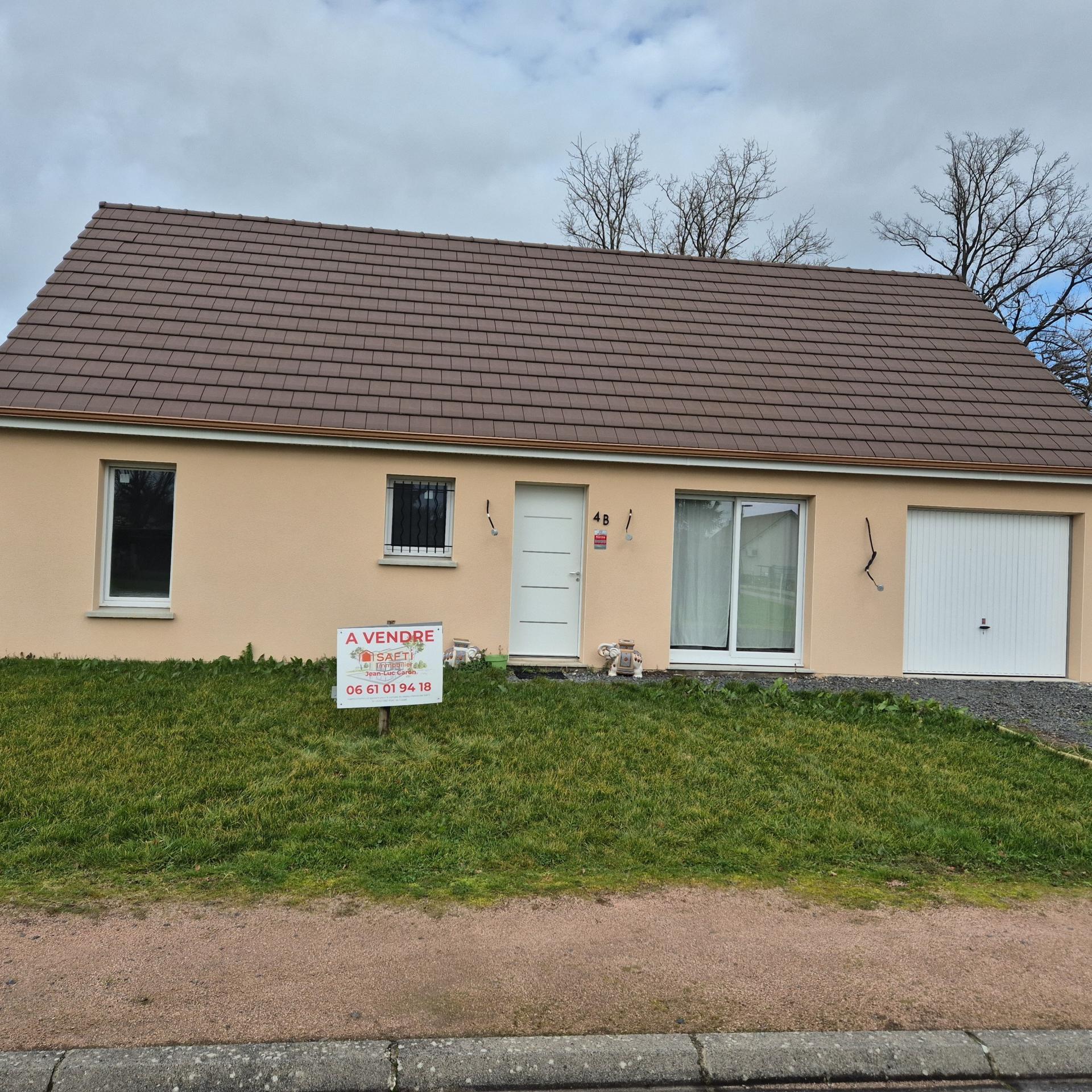 Je vous propose un plain-pied construit en 2023 doté de 3 chambres, une salle de bain (baignoire, lavabo double vasque), wc, cellier, une cuisine équipée ouverte sur le séjour et un garage.