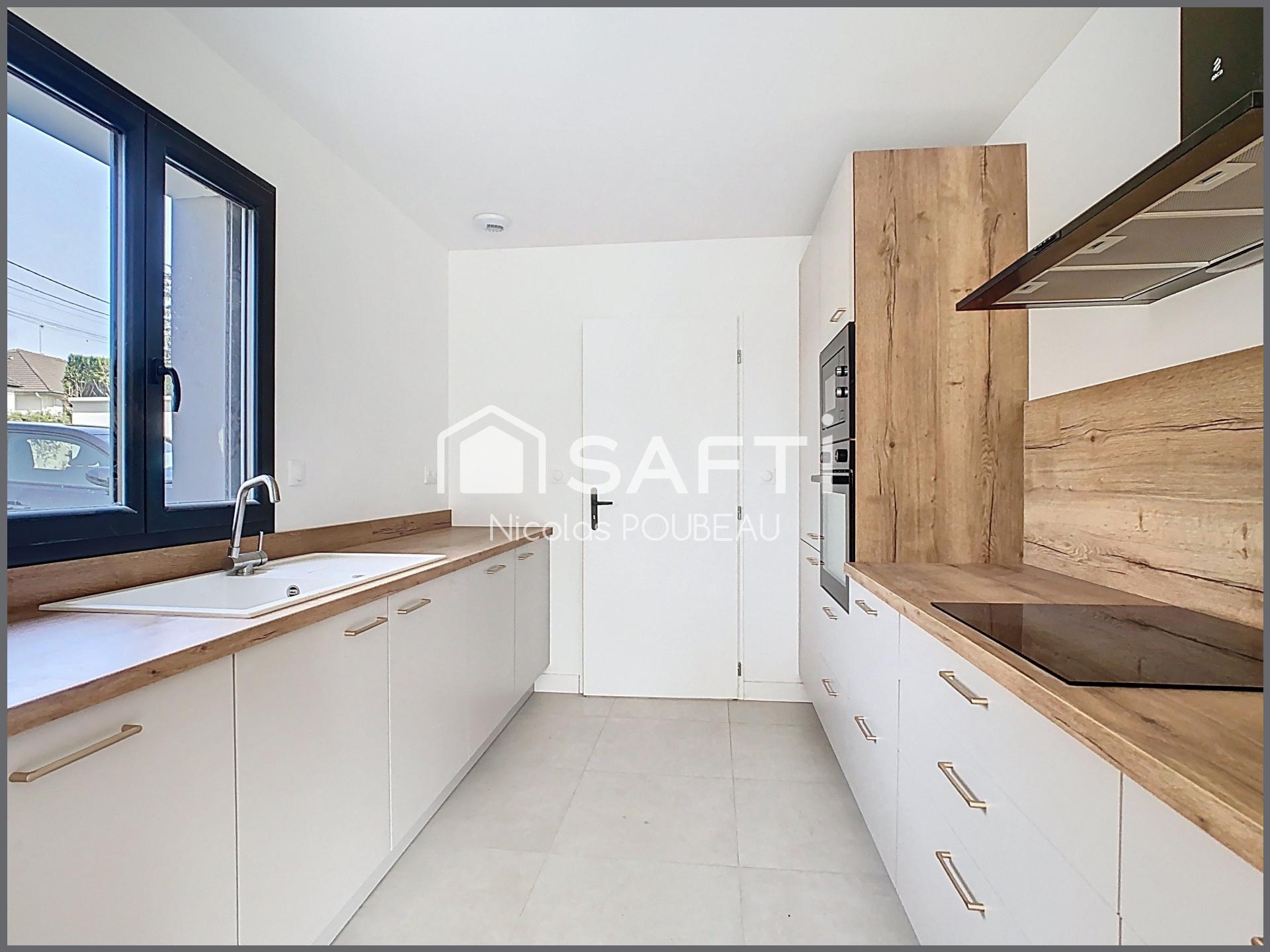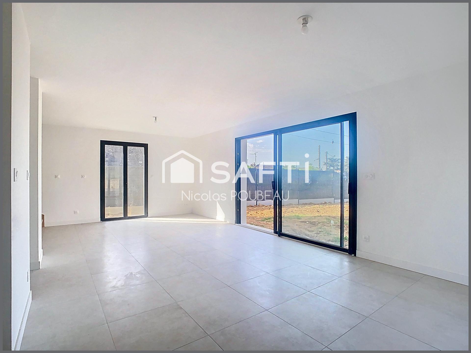 SOUS OFFRE Venez poser vos valises dans cette agréable maison neuve de 122 m2 proche de toutes les commodités à pied ( commerces, bus et train). En rez de chaussée, vous profitez d'un agréable séjour lumineux, d'une cuisine moderne aménagée et équipée, d'une chambre avec salle d'eau privative et d'un wc séparé. L'étage offre 3 grandes chambres (14,12 et 13 m2), une grande salle de bains, une buanderie/lingerie et un wc. Vous profitez également d'un garage attenant à la maison et d'une parcelle totalement clôturée de 431 m² sans vis à vis. Chauffage par PAC au sol sur chaque niveau. Norme PMR. RT 2020 et toutes les garanties constructeurs .