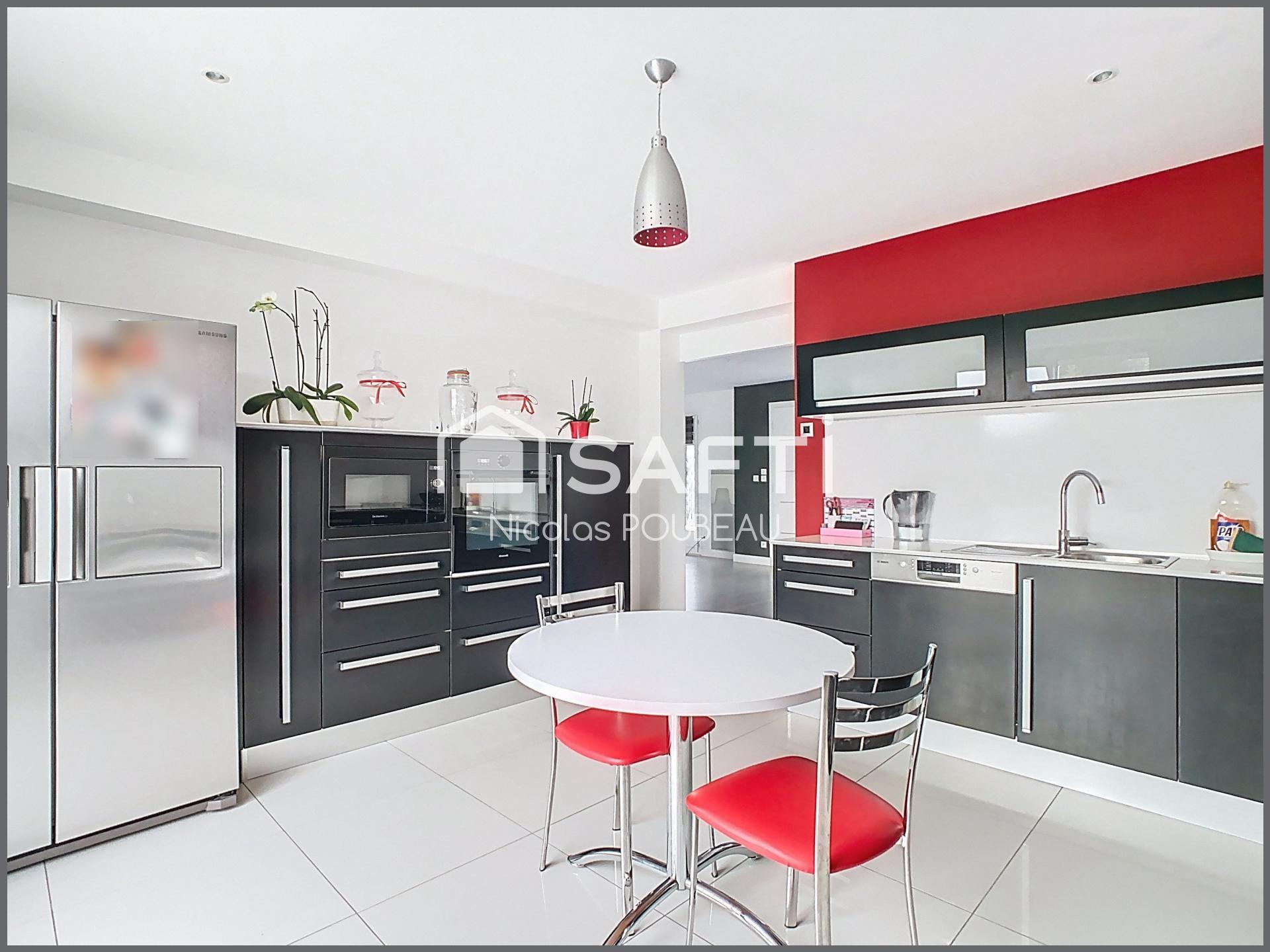 Un garage double carrelé de 56 m2 avec préau complète l'ensemble. Ses autres atouts : point d'eau, puisard sur le jardin, arrosage automatique, aménagement des voies extérieures et éclairages extérieurs et une parcelle de 578 m2 piscinable sans vis à vis. Chauffage électrique et réservation tubée pour cheminée ou poêle. Aucun travaux à prévoir. Disponible en juin 2026.