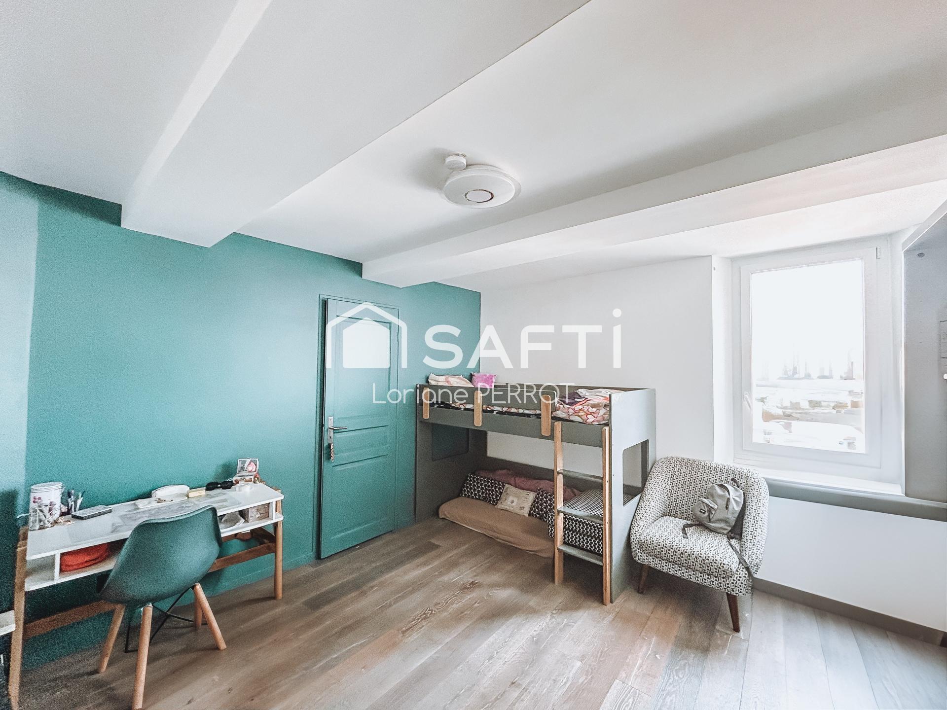 À l’étage, l’espace nuit propose trois chambres, toutes équipées de placards intégrés, dont une avec son propre dressing. Une seconde salle d’eau avec WC vient compléter l’ensemble.