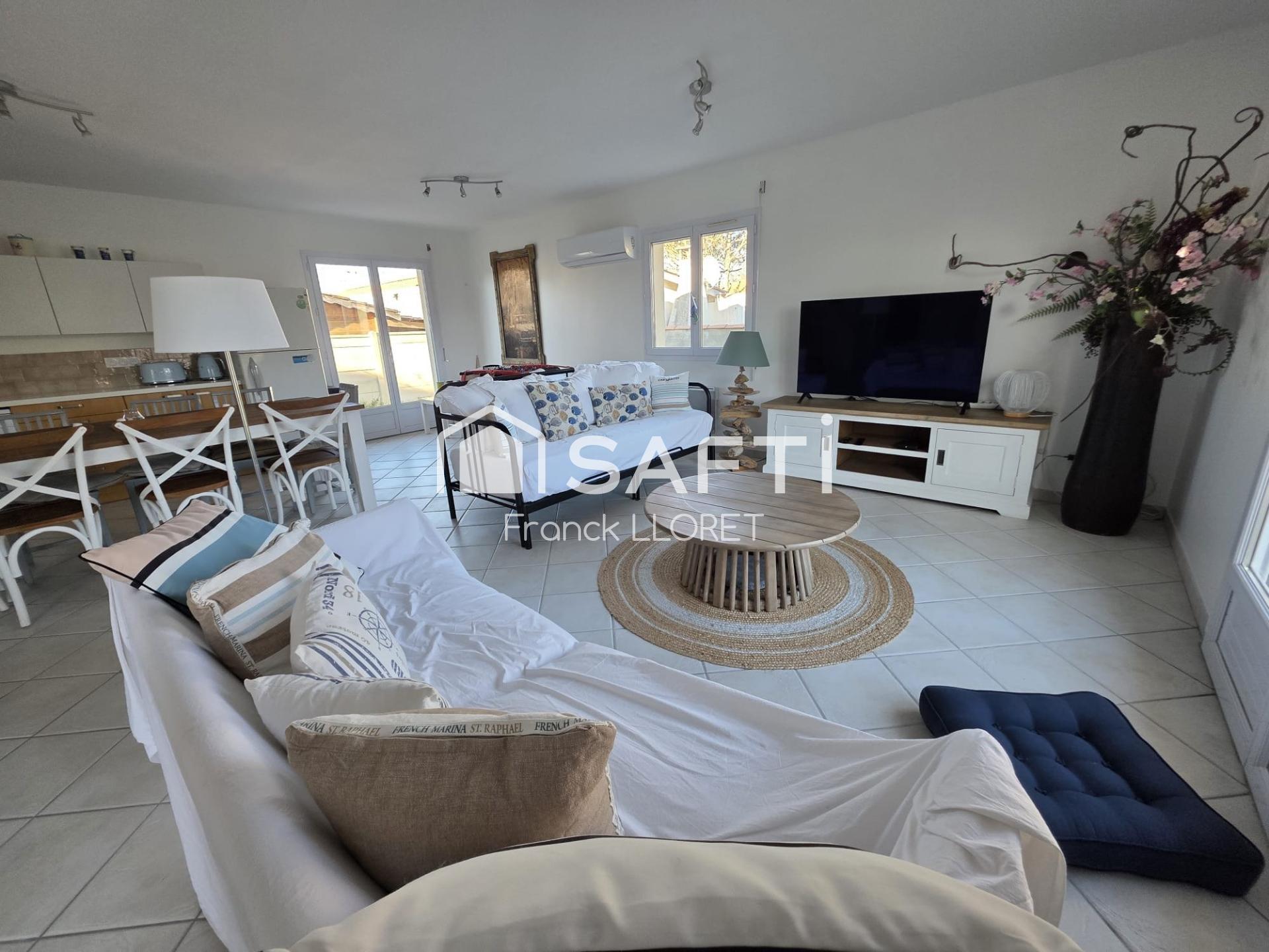 Voici une villa abordable idéalement située: plage, marché, commerces à vos pieds.