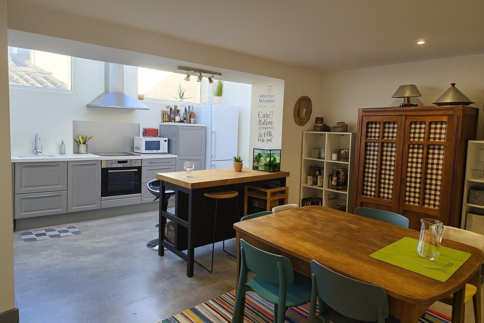 Une cuisine avec accès direct à la terrasse, idéale pour profiter des beaux jours