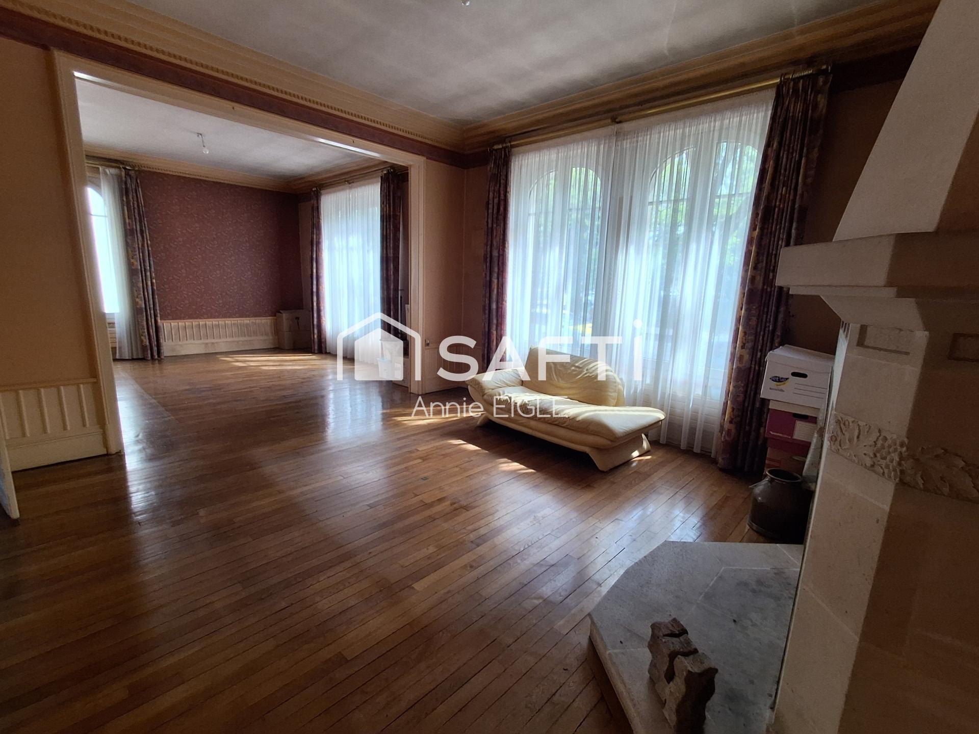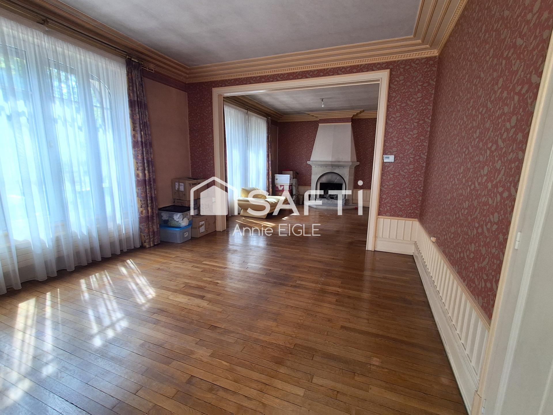 A voir absolument cette maison de style des années 30 de 210 m2 environ sur 3 niveaux et sous-sol complet. Vous serez charmés dès l'entrée par un premier niveau lumineux grâce à ses immenses fenêtres et une belle hauteur sous plafond. Le rez-de-chaussée est composé d'une grande entrée avec sol en travertin, un salon séjour de 45 m2 environ avec sa magnifique cheminée, sa cuisine donnant à l'arrière sur la terrasse puis sur le terrain de 6 ares, clos, plat, arboré et sans vis à vis, un bureau et un WC. Un large escalier en chêne vous mènera à la partie nuit du second niveau avec 3 grandes chambres munies d'une salle d'eau pour deux et d'une salle de bain pour la troisième. Au troisième niveau, une autre suite pour un confort optimal et une grande pièce pouvant servir de grenier ou autre. Concernant le sous-sol, plusieurs pièces, cellier, buanderie et cave à vins entre autres. Vous pourrez stationner 2 véhicules dans le double garage à portes éléctriques directement par la rue à l'arrière de la maison, mais aussi les stationner dans la cour fermée devant par un portail éléctrique. La maison est chauffée au gaz de ville et grâce à la cheminée, DPE D, tout à l'égoût.