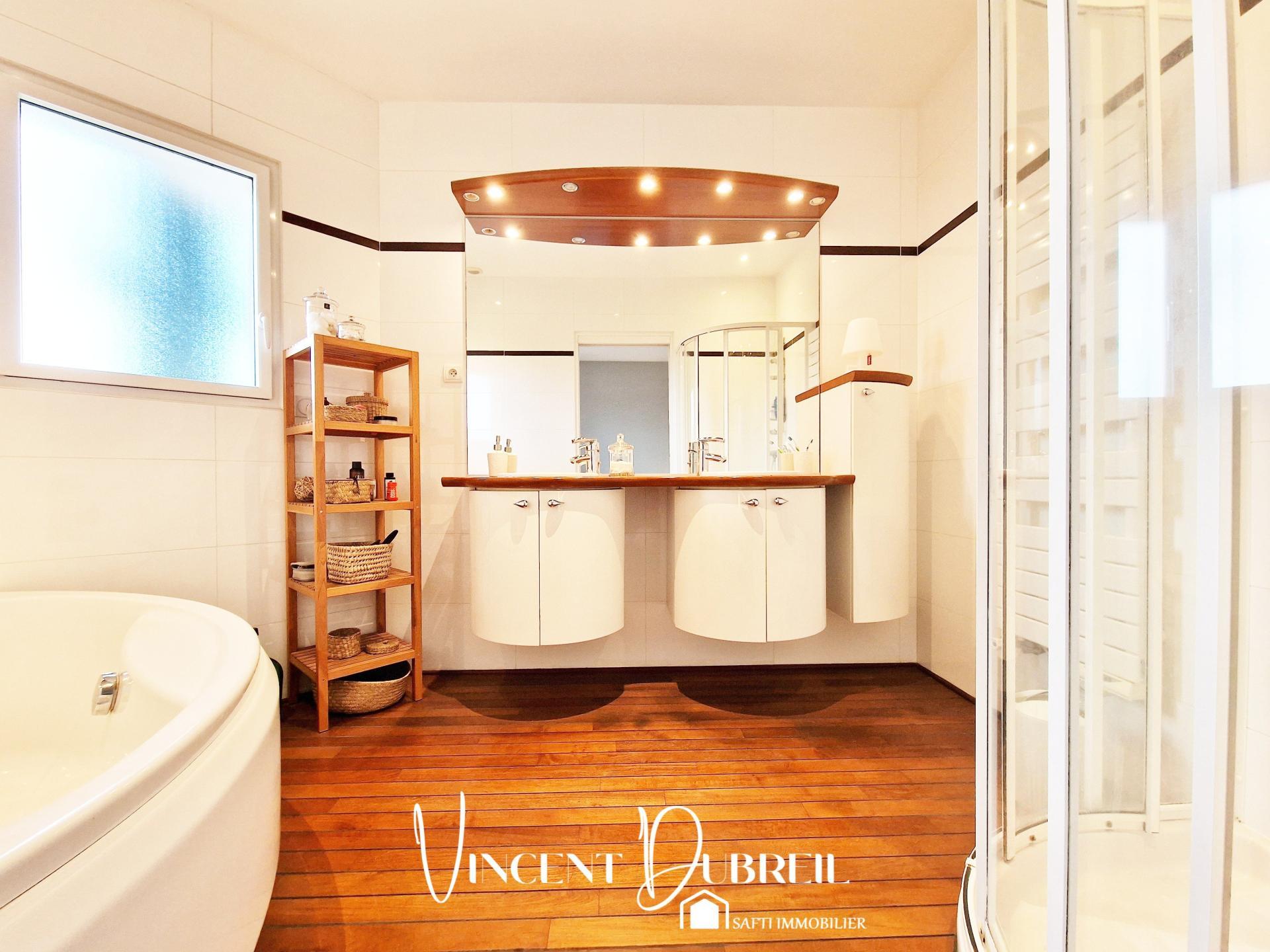 À l'étage, vous profiterez d'un grand palier desservant trois chambres, chacune avec un grand placard, une salle d'eau et un wc indépendant.