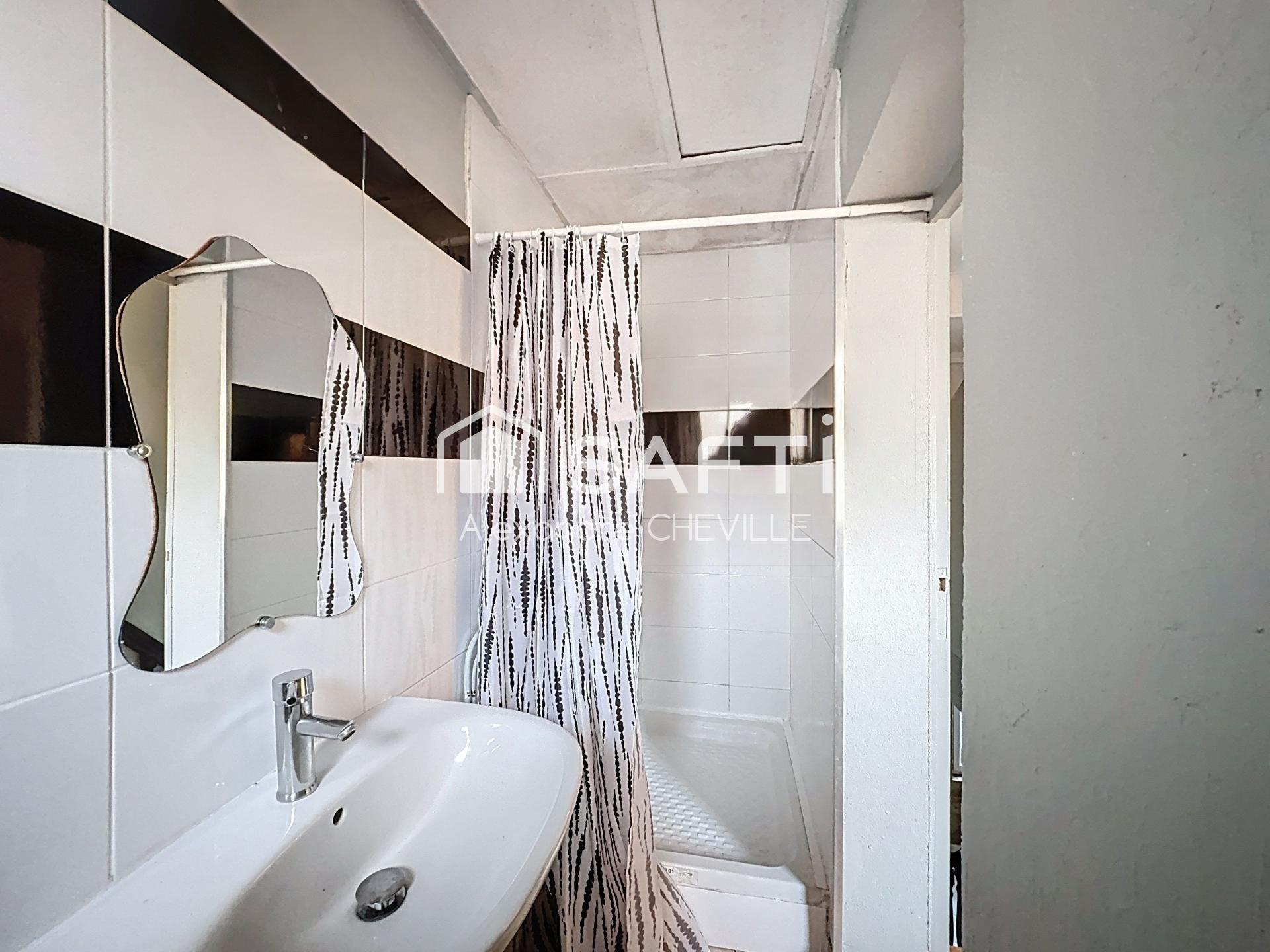 Le rez-de-chaussée comprend une pièce de vie lumineuse, une cuisine indépendante, une chambre et une salle d’eau avec toilettes. À l’étage, une chambre mansardée ainsi qu’une seconde salle d’eau viennent compléter l’ensemble.