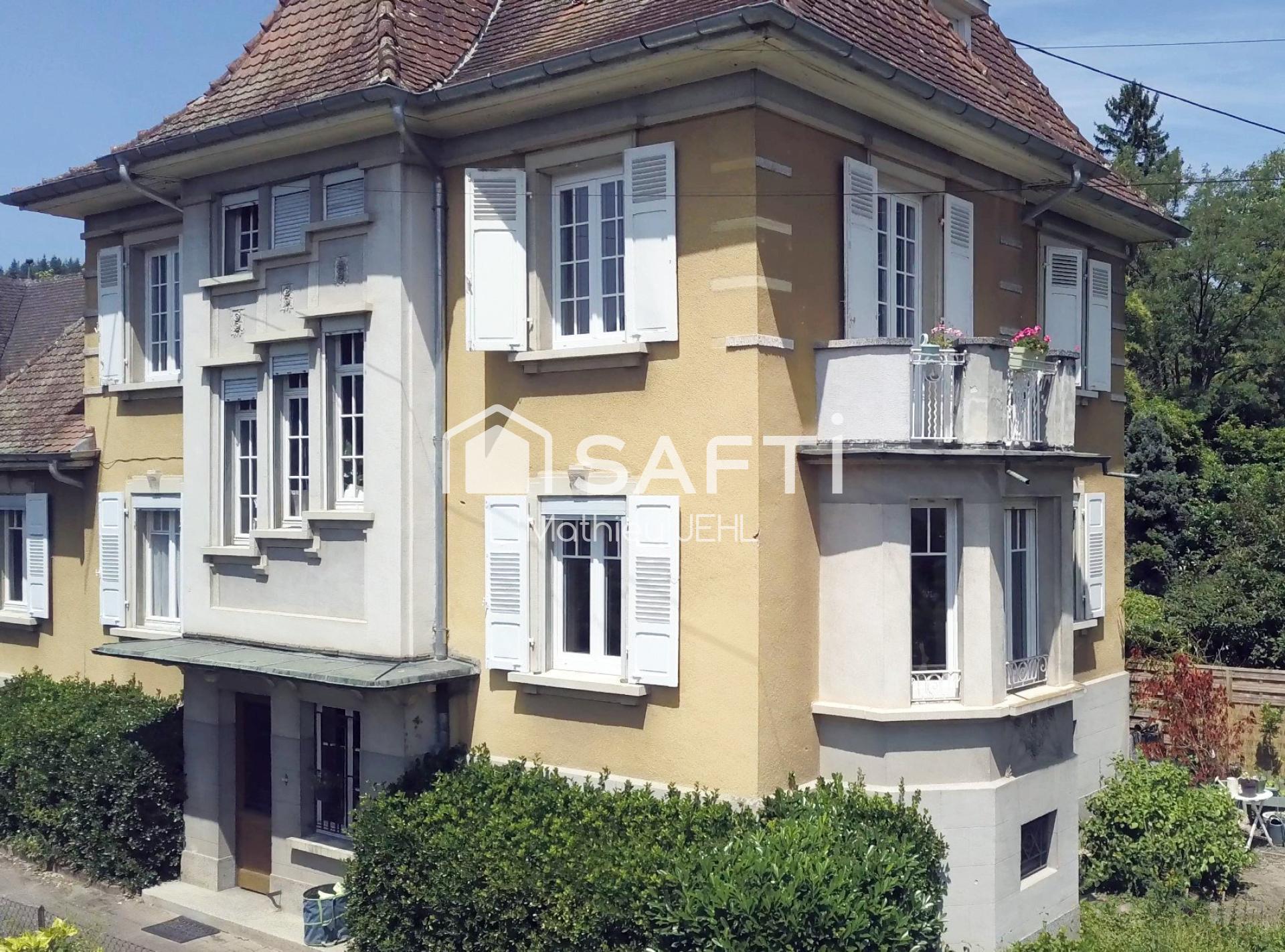 Située dans le prisé "quartier des millionnaires" à Villé et à deux pas du centre, cette élégante maison de maître construite en 1934 allie le cachet de l’ancien au confort moderne. D’une surface habitable de 172 m², elle repose sur un magnifique terrain arboré de 12,6 ares entièrement constructible.