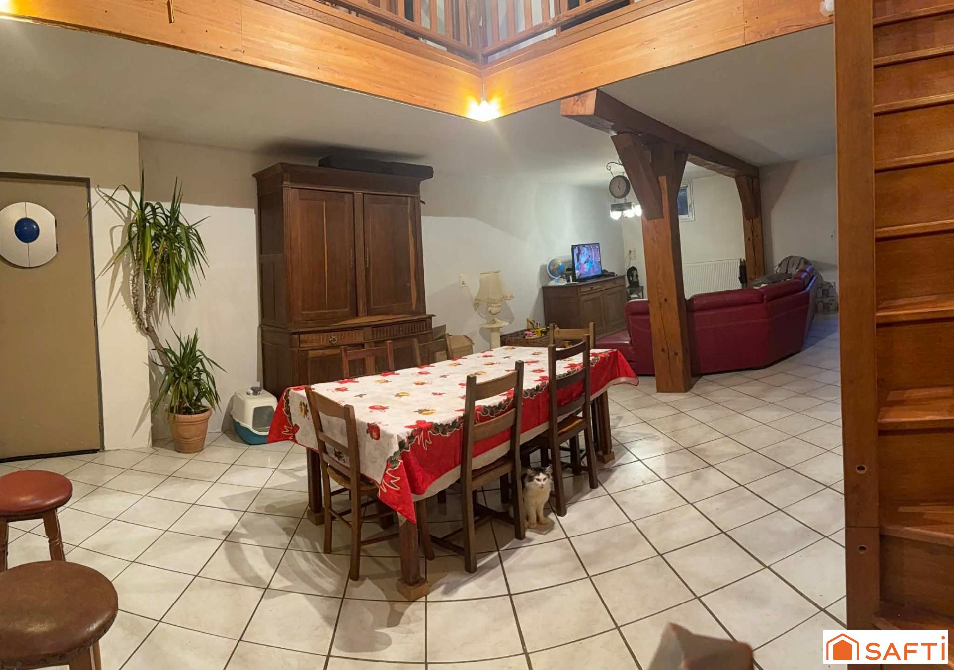 Cette maison bénéficie d’un cadre de vie paisible tout en étant située proche de toutes les commodités : Commerces de proximité, école, maison médicale, accès autoroutier et gare TGV Meuse. Ce bien est composé au rez-de-chaussée : D’une entrée accueillante, d’une cuisine équipée ouverte sur un spacieux salon de 48 m², une buanderie avec un WC. 1er étage : un palier dessert trois grandes chambres, une salle de bains et des toilettes séparées. 2e étage : deux chambres mansardées viennent compléter la partie nuit. Un terrain, une cave, ainsi que d’une dépendance offrant de nombreuses possibilités d’aménagement ou de stockage complètent ce bien. Côté équipements : Toutes les menuiseries sont en double vitrage, l’ensemble de la structure est en bon état et bien isolée. Le chauffage est assuré par une pompe à chaleur récente et un poêle à bois placé dans le salon. Cette maison allie le charme de l’ancien et le confort moderne, dans un environnement calme et verdoyant. Une belle opportunité !