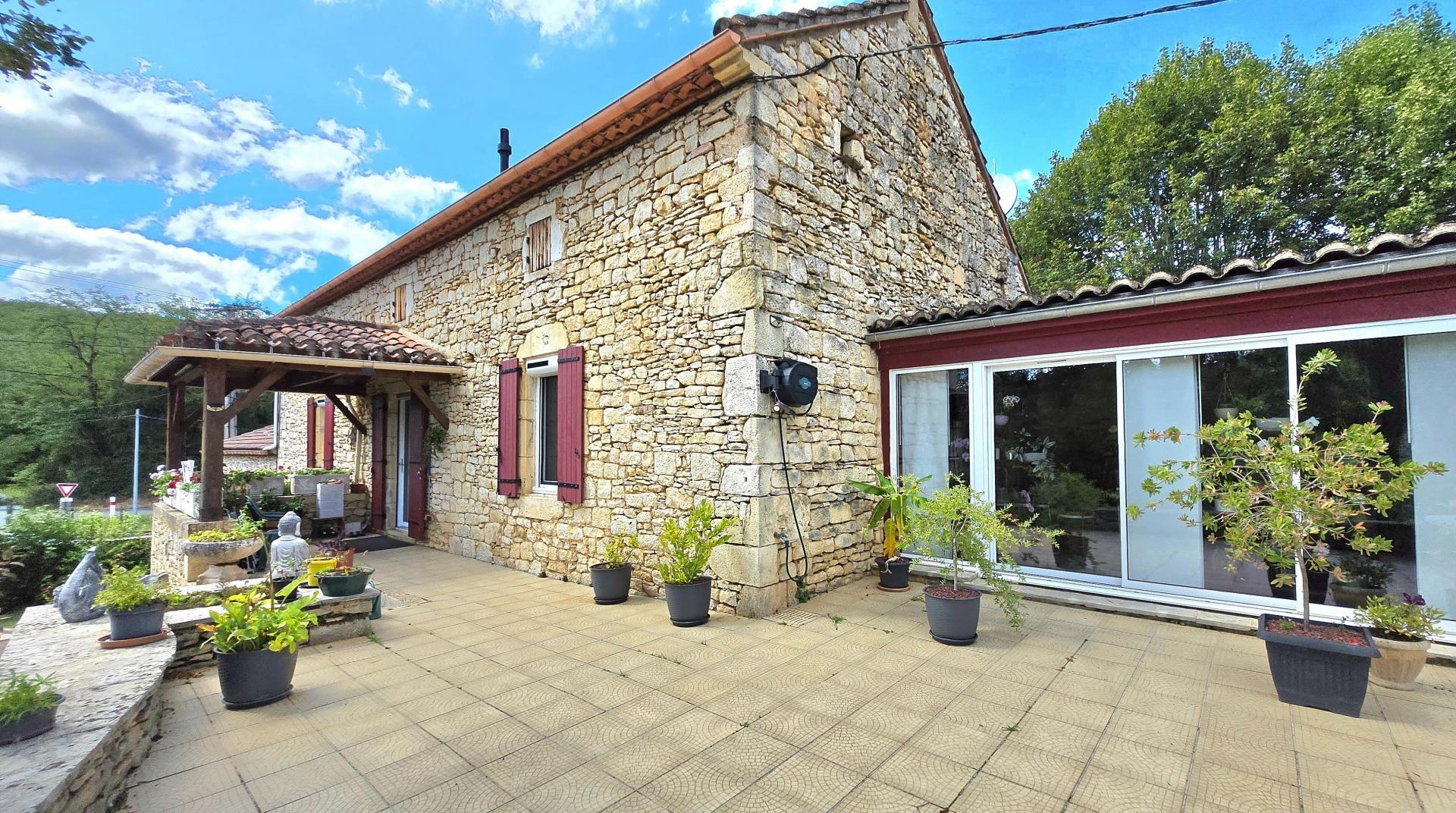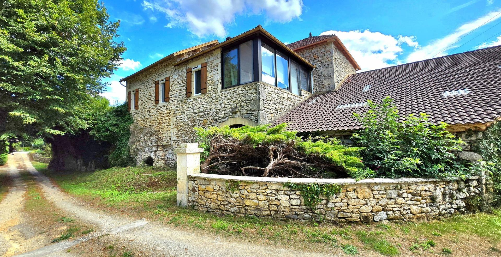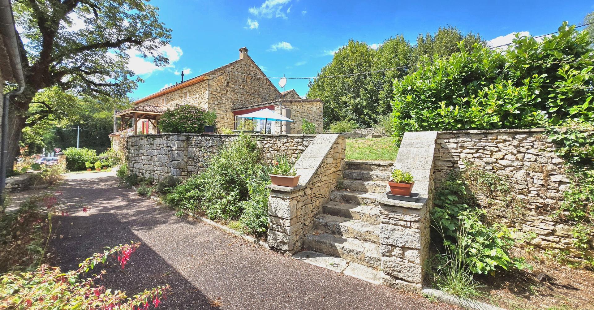 Maison en pierres et dépendances dans un petit hameau de la vallée de la Lémance