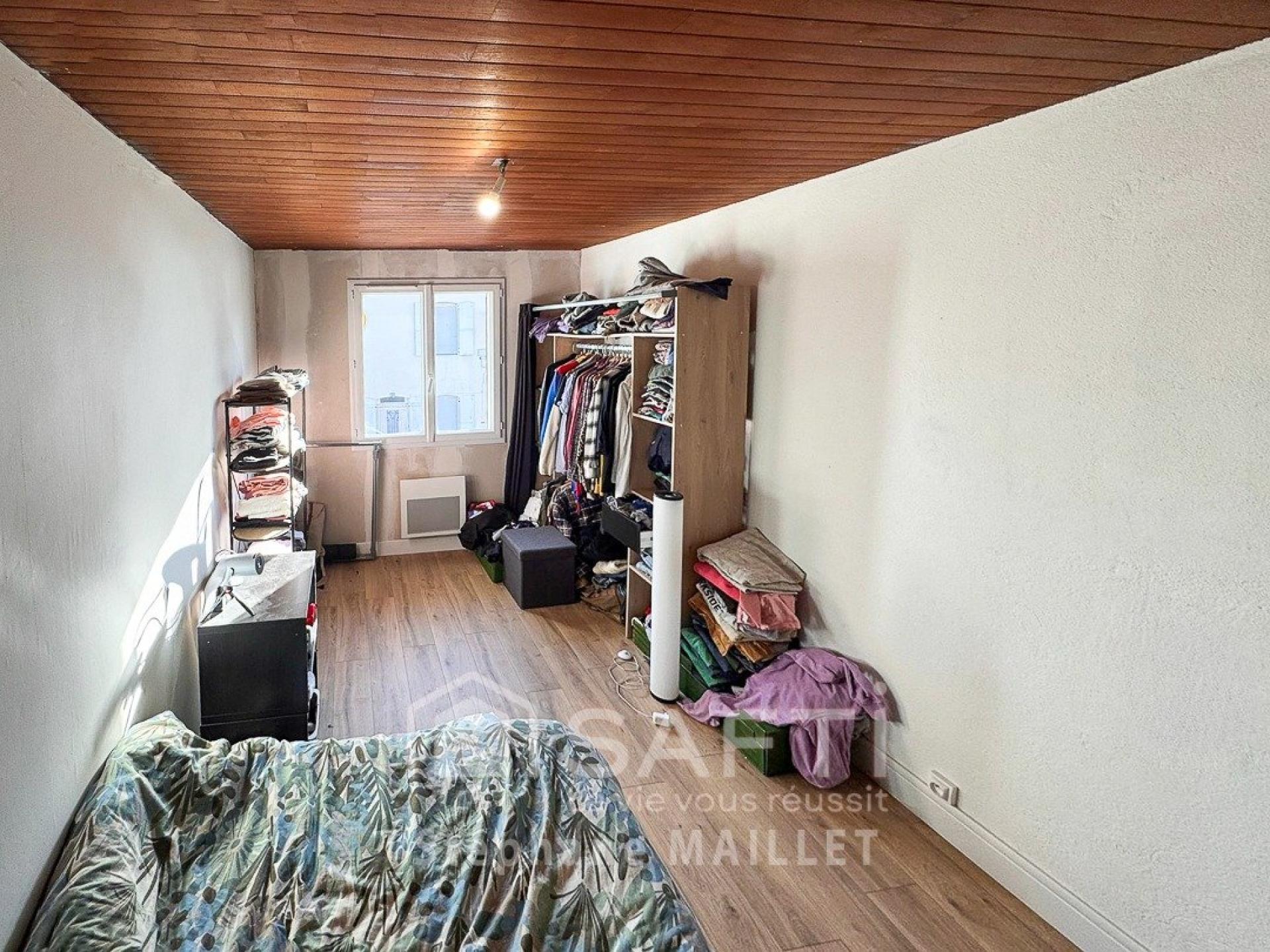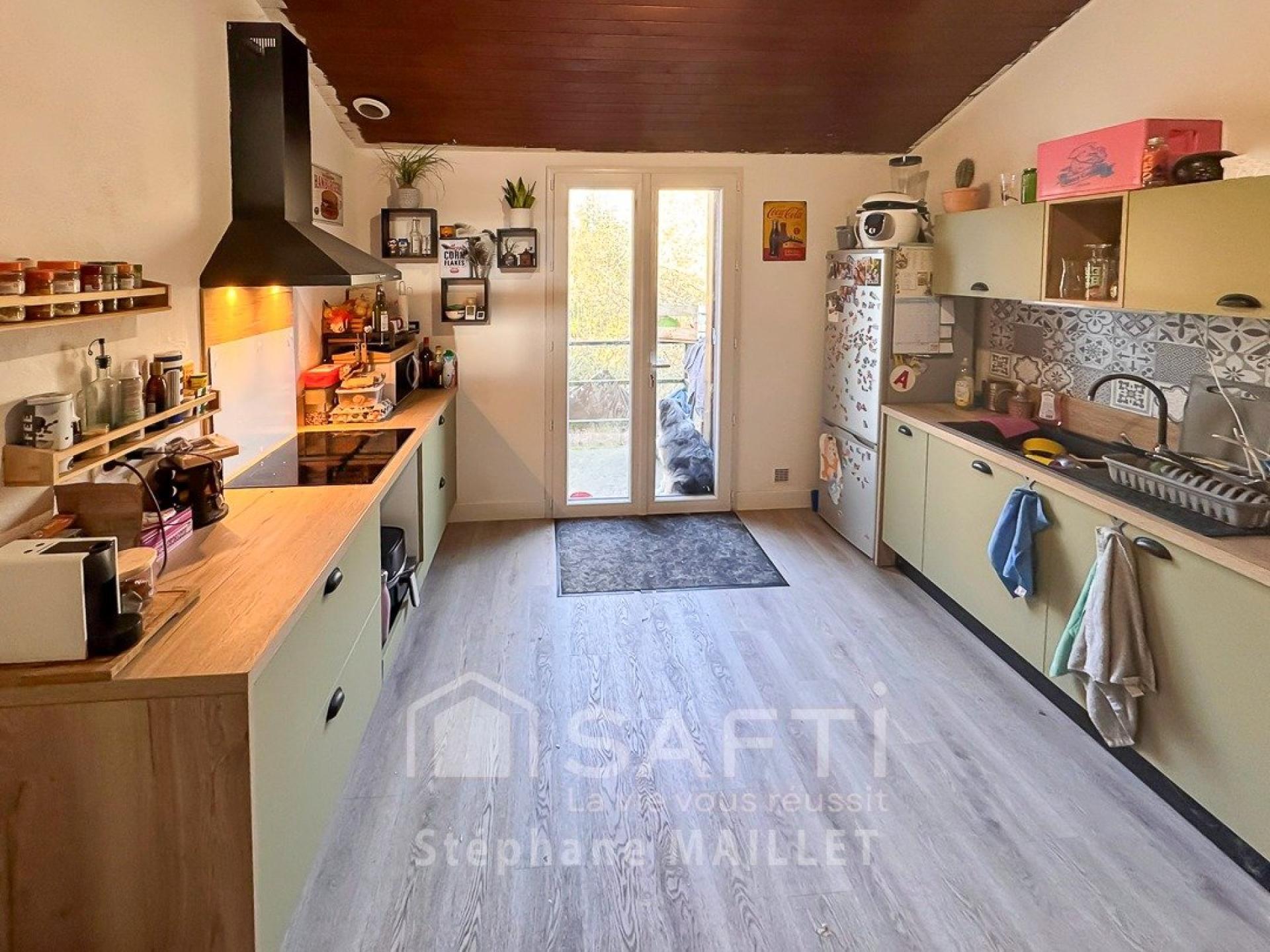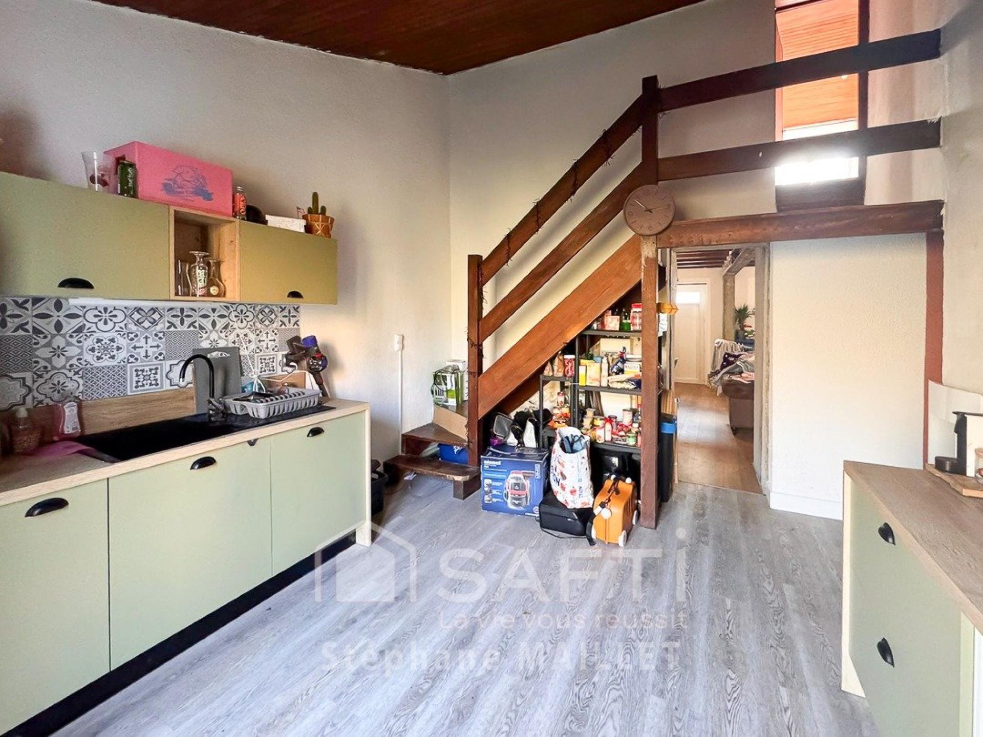 Centre-ville, maison rénovée 75 m², 2 chambres, terrain 190 m², cuisine indépendante, salon-salle à manger, prête à vivre.