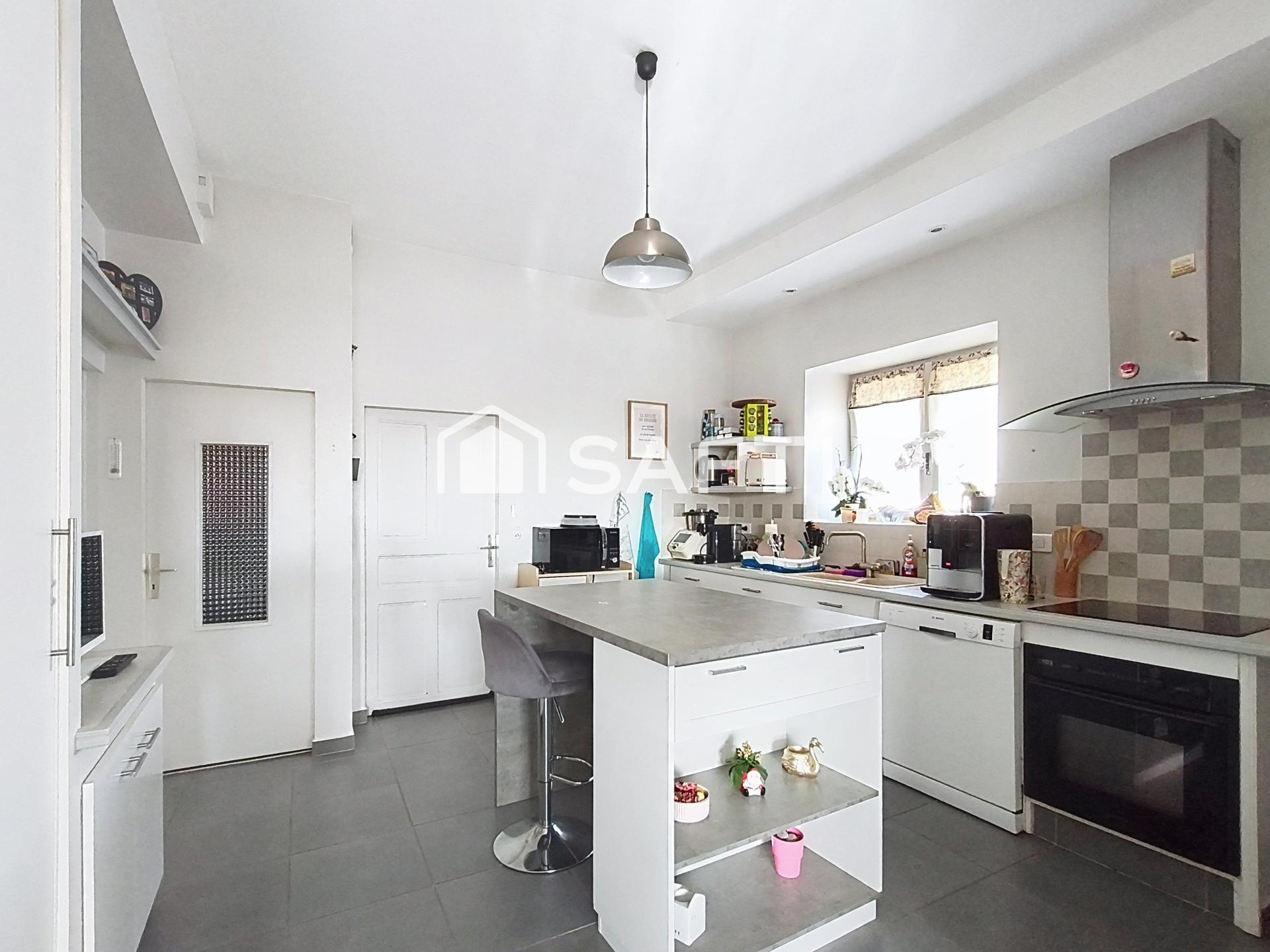 Charmante maison de plain-pied d’environ 87 m², idéalement située à proximité du bourg, sur les hauteurs de Saint-Cyr-en-Retz. Soigneusement entretenue, elle offre une belle entrée avec placard, desservant une cuisine aménagée, un agréable séjour ainsi qu’un salon lumineux équipé d’un poêle à bois, créant une atmosphère chaleureuse et conviviale.