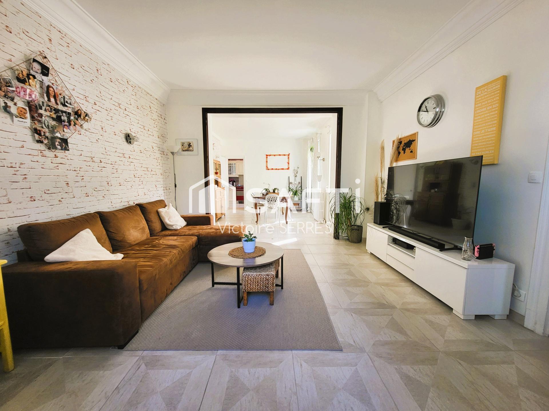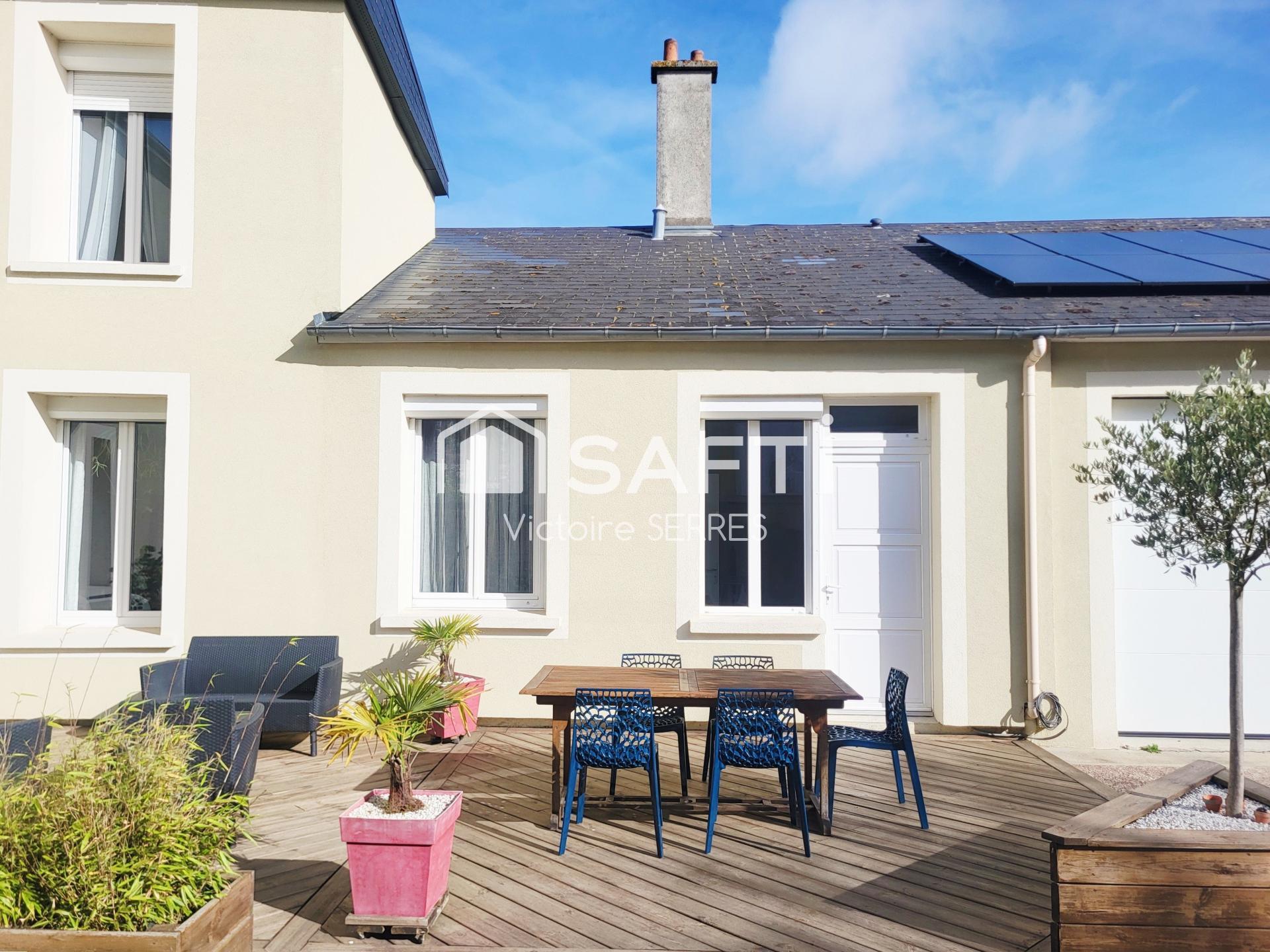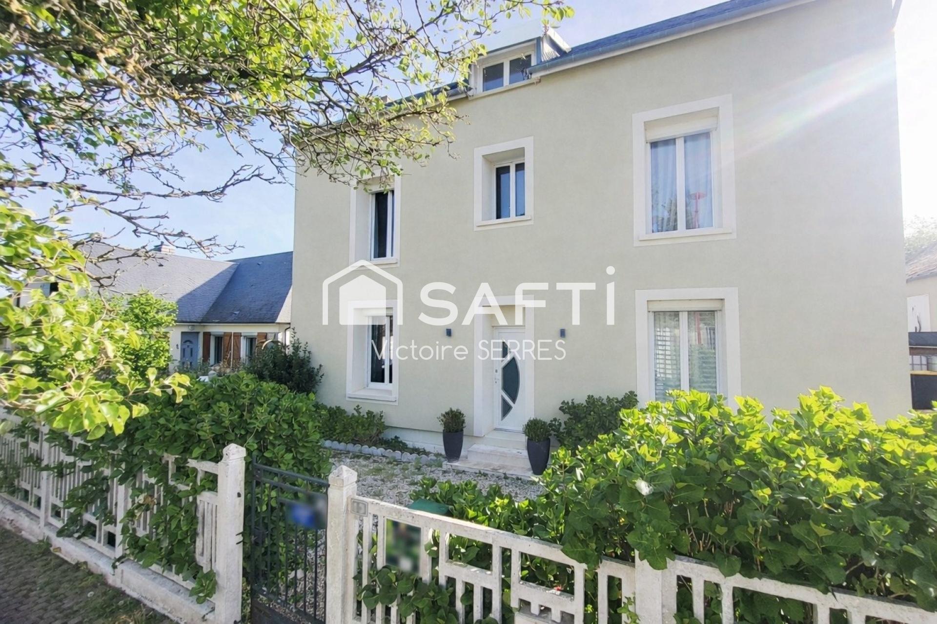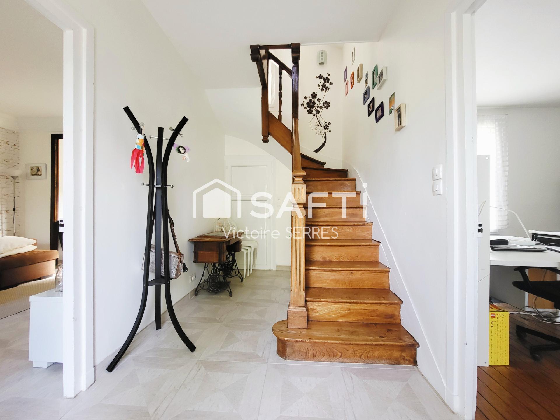 Cette jolie maison individuelle pleine de charme – belle hauteur sous plafond, moulures, poutres apparentes, parquets - entourée d’un terrain de 520 m2 et à la façade rénovée vous accueille sur une surface de 182 m2 au sol, 164 m2 carrez.