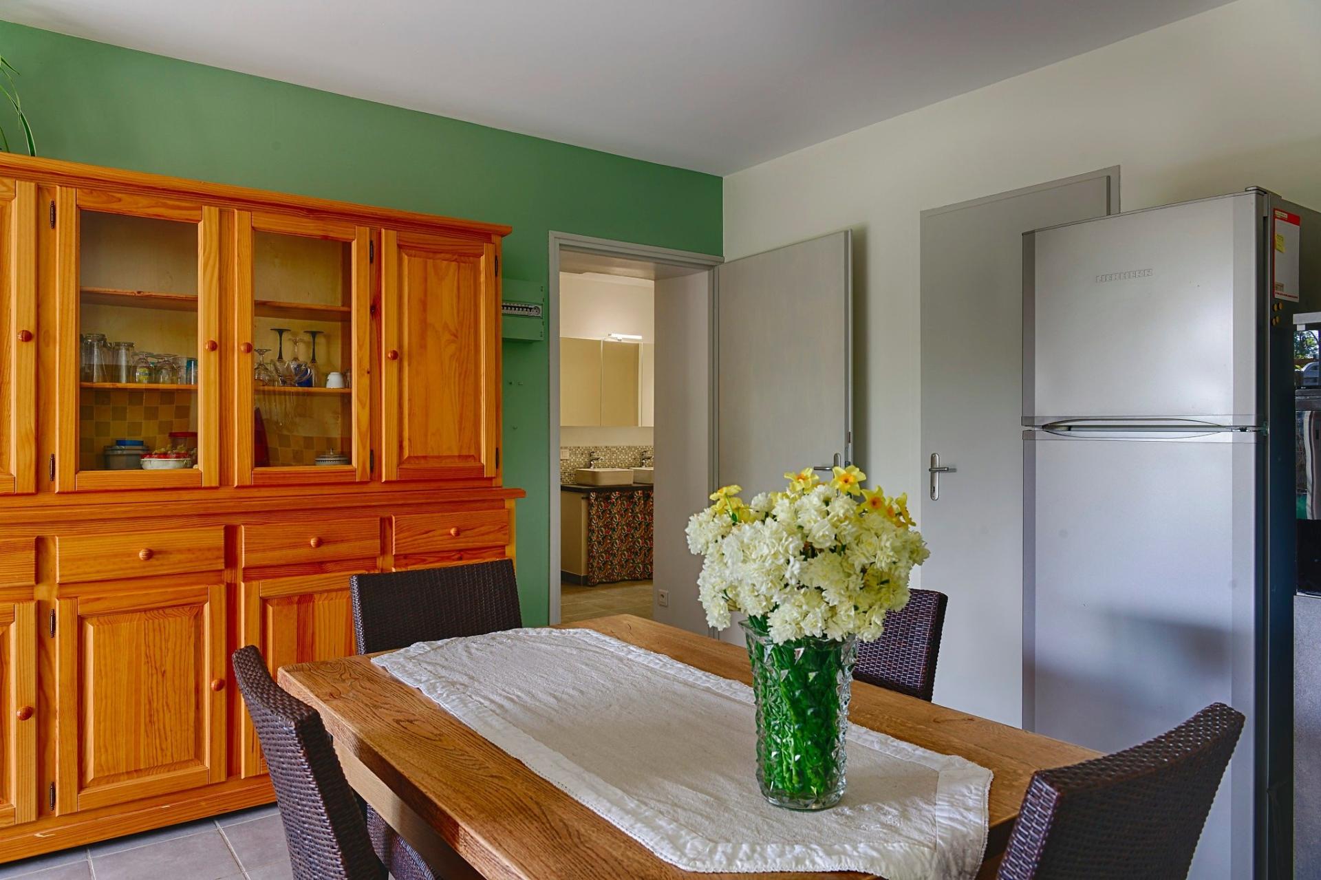 Actuellement sa configuration offre une vaste cuisine avec cellier, et une belle pièce à vivre ouvrant sur le parc .