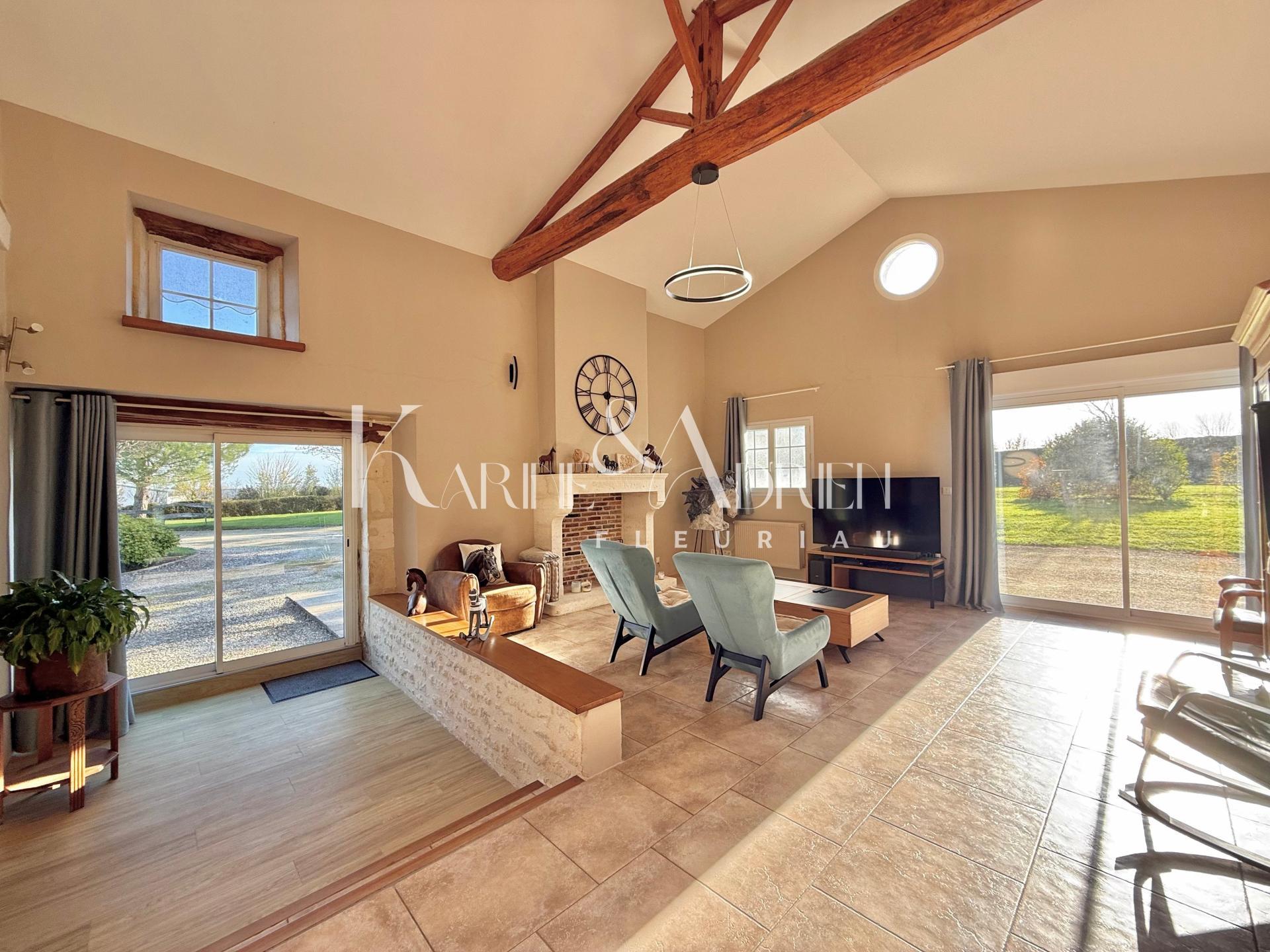 Située à Vix, cette propriété en pierre rénovée avec soins de 215m2 habitable offre un cadre de vie paisible dans un environnement verdoyant. Idéalement localisée, cette propriété bénéficie d'une tranquillité absolue tout en restant proche des commodités du village et à seulement 40 MIN de LA ROCHELLE et à 15 MIN de FONTENAY-LE-COMTE.