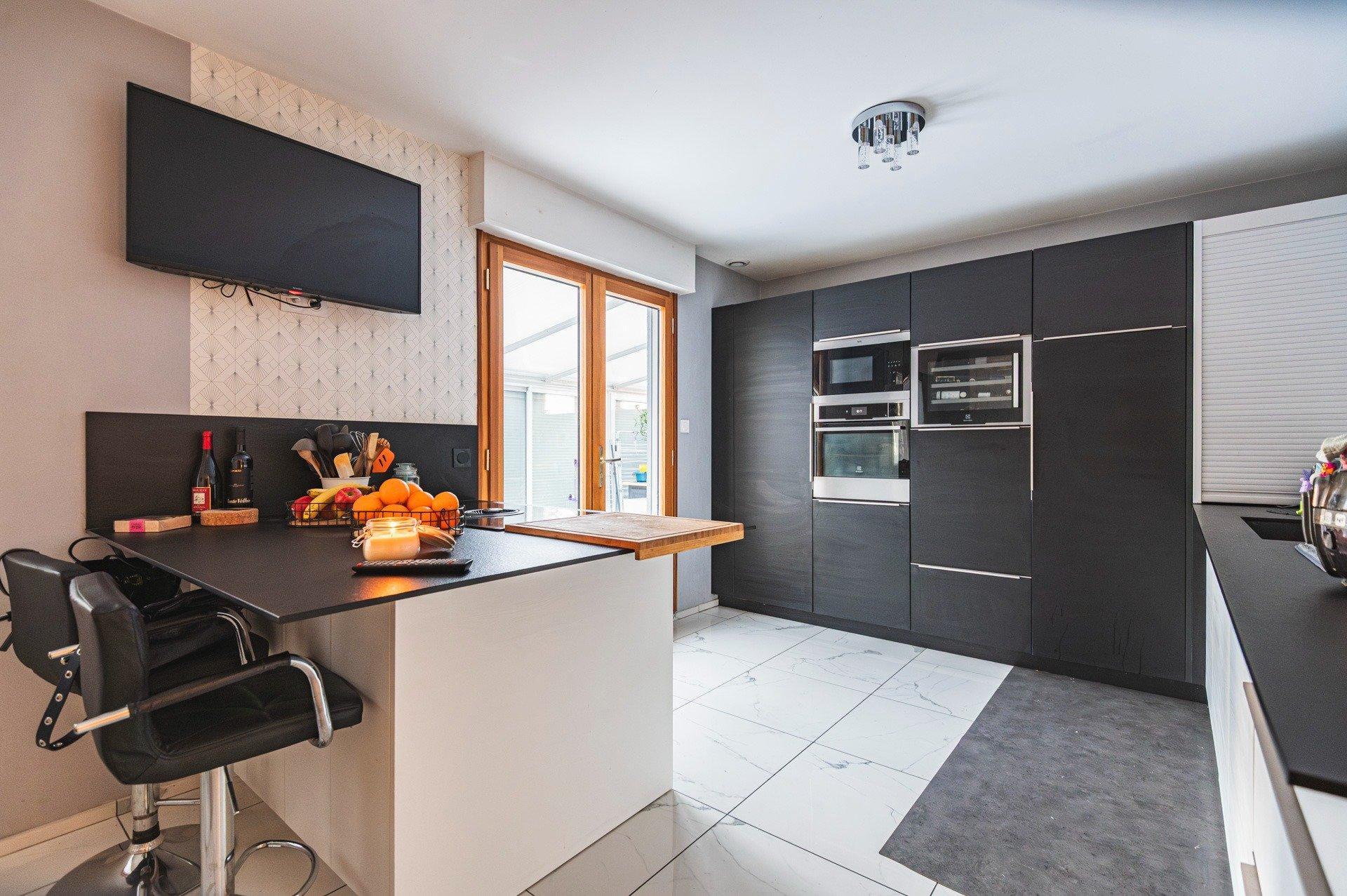 Dès l’entrée, on découvre une grande pièce de vie lumineuse à l’atmosphère chaleureuse, une cuisine entièrement équipée ouverte sur une véranda chauffée avec poel à granulé , idéale comme salon d’hiver ou espace détente.
