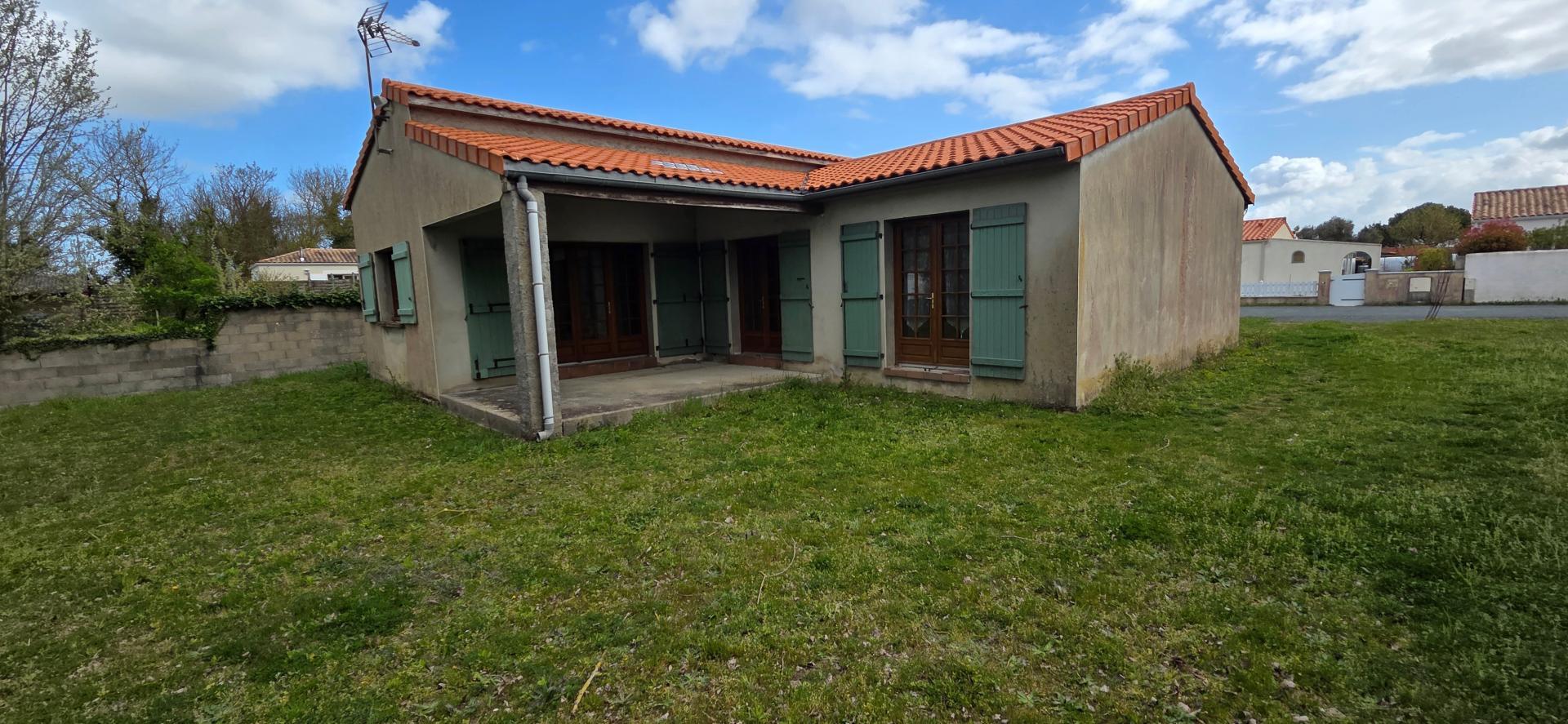 Cette maison de plain-pied, comprend une entrée, une grande pièce de vie, 60m2 donnant sur terrasse couverte, cuisine, 3 chambres, dont une donnant sur la terrasse, salle d'eau, wc/