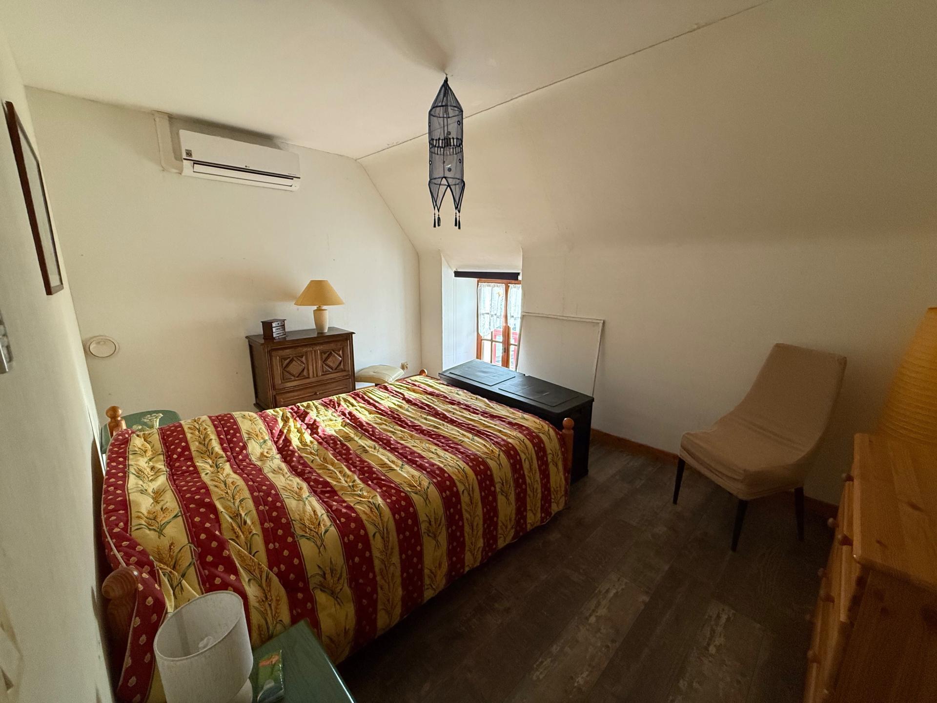 La maison principale comprend au rez-de-chaussée un séjour avec cheminée, une cuisine équipée et une salle d’eau avec WC.