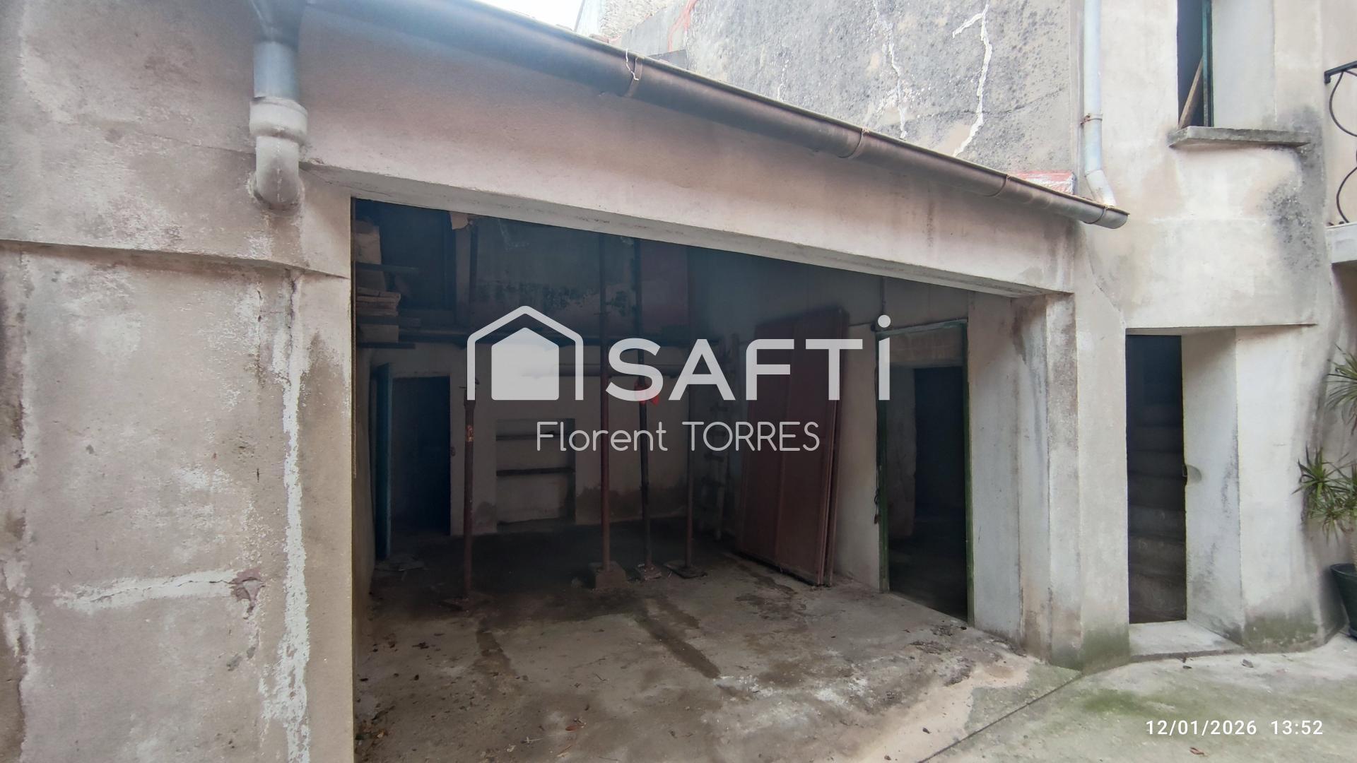 Le bien se compose de plusieurs espaces : atelier, zones de stockage, ancienne partie garage et pièces annexes, offrant de nombreuses possibilités d’aménagement pour un usage professionnel ou personnel.