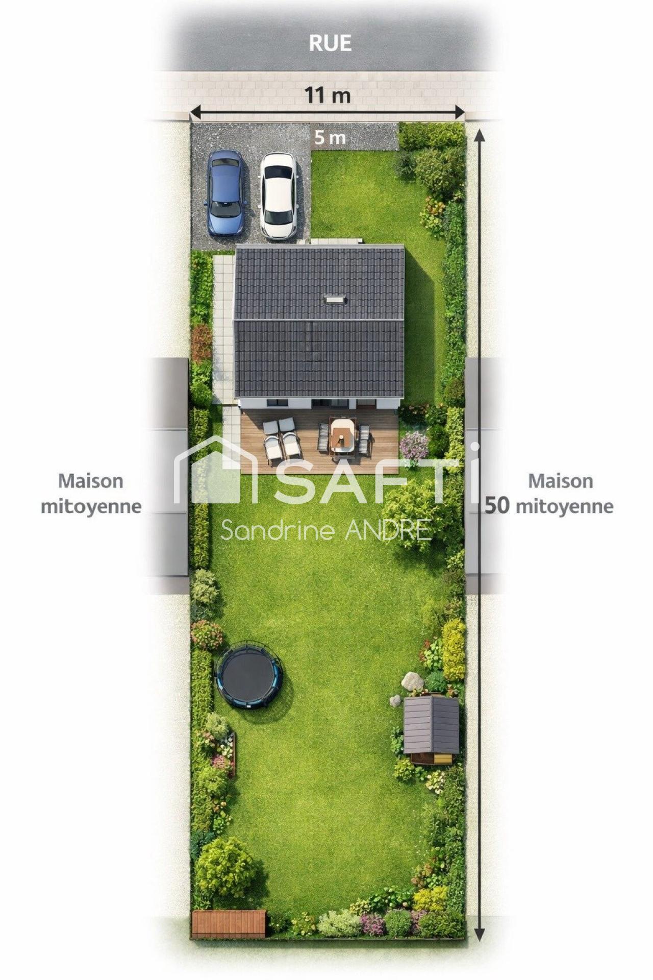 La parcelle bénéficie d’une façade d’environ 11 mètres.