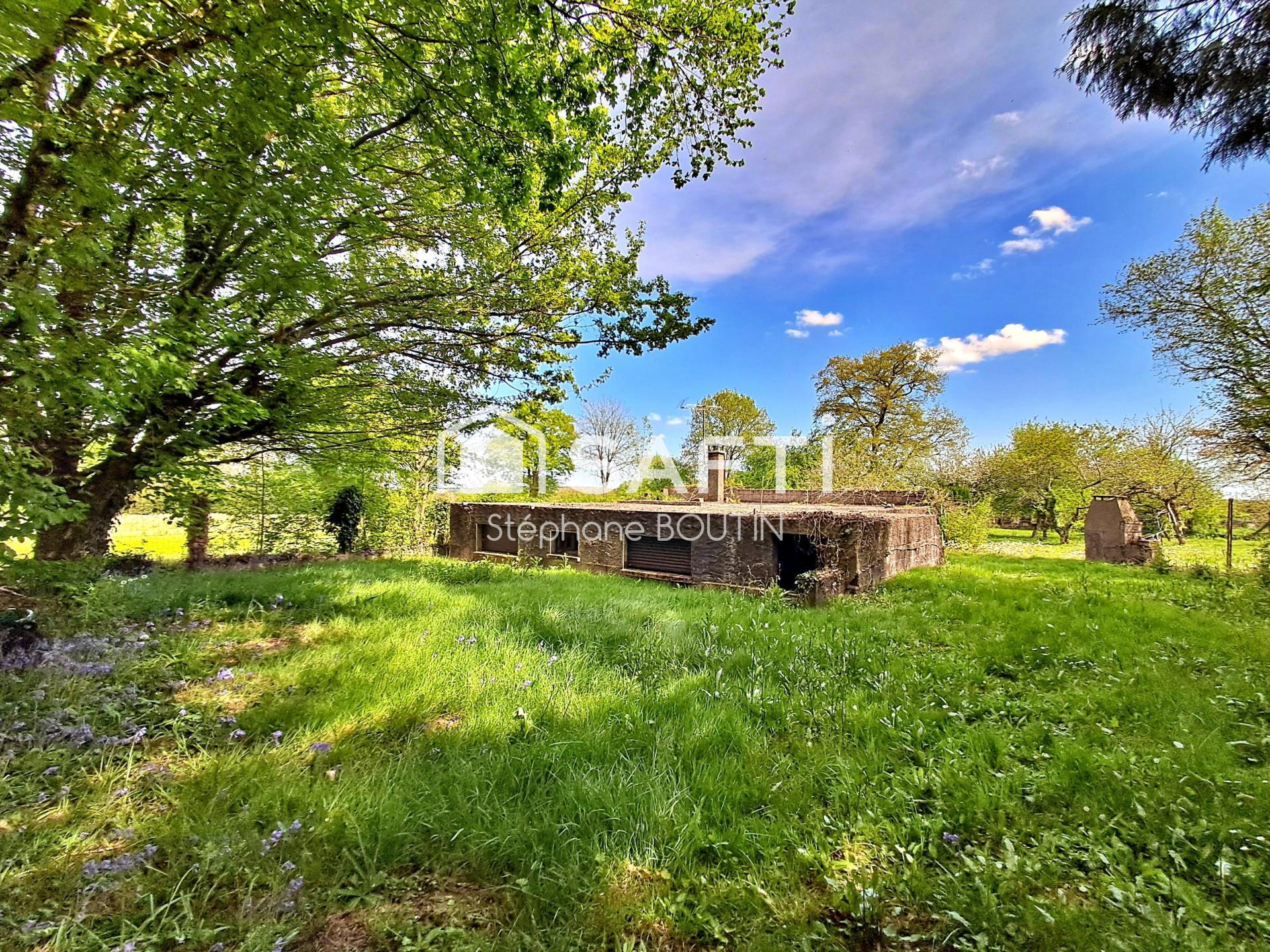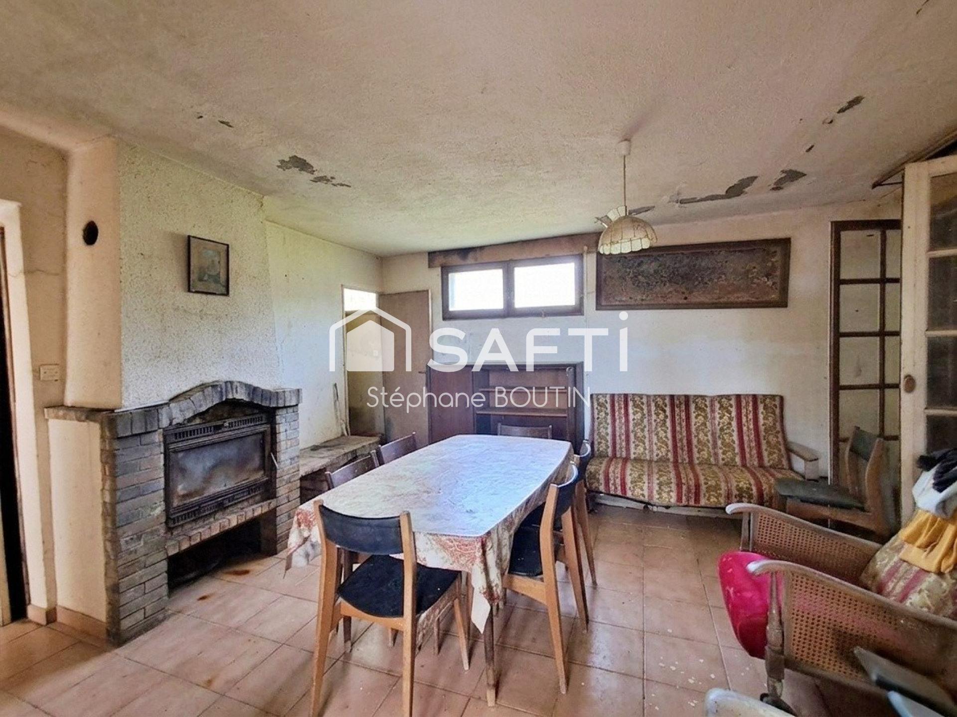 Présence d’une construction avec espace de vie en sous-sol, un salon avec cheminée, une cuisine, trois chambres et une SDB avec WC (fosse septique installée).